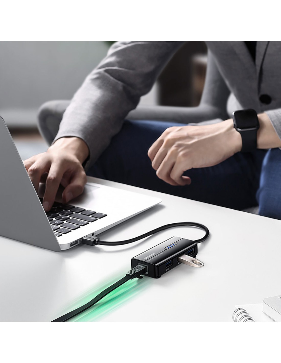 Ugreen 20265 yra ne tik tinklo adapteris, bet ir HUB. Trys USB 3.0 prievadai leidžia vienu metu prijungti įvairius įrenginius: nuo standžiųjų diskų iki spausdintuvų. Tai patogus sprendimas, leidžiantis greitai ir patogiai keistis duomenimis tarp įrenginių, kartu užtikrinant didelį perdavimo greitį.