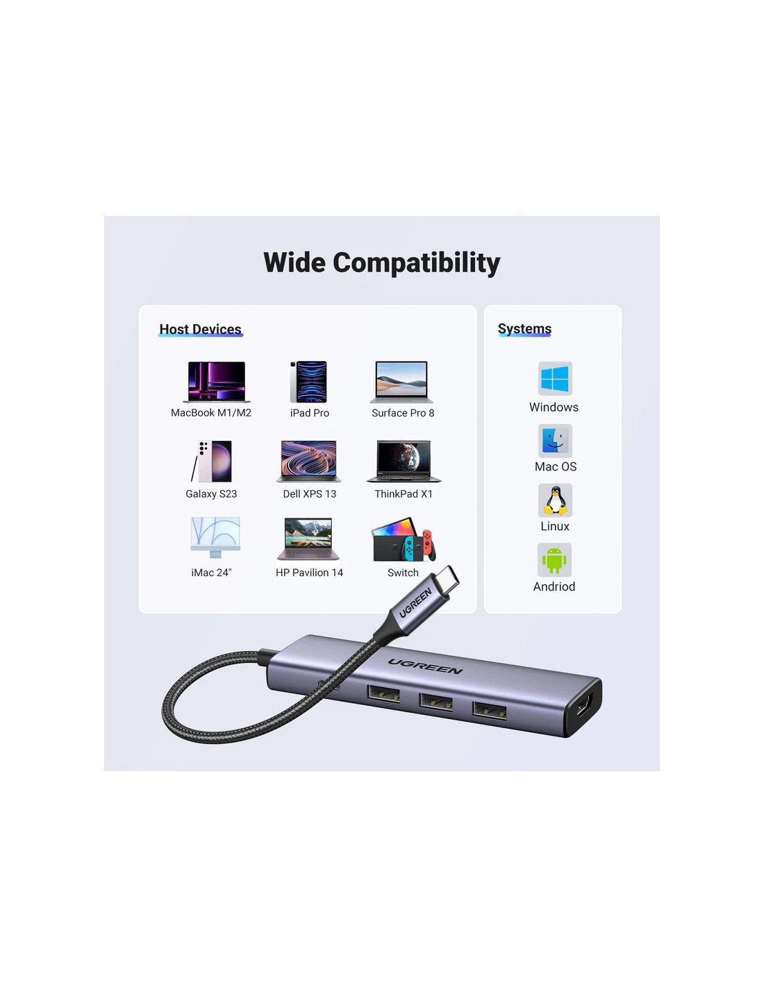 - - Padidina nešiojamojo kompiuterio funkcionalumą. Ugreen CM511 15597 5in1 HUB išplečia USB-C prievadą papildomais 3x USB-A 3.0, 1x HDMI, 1x USB-C,