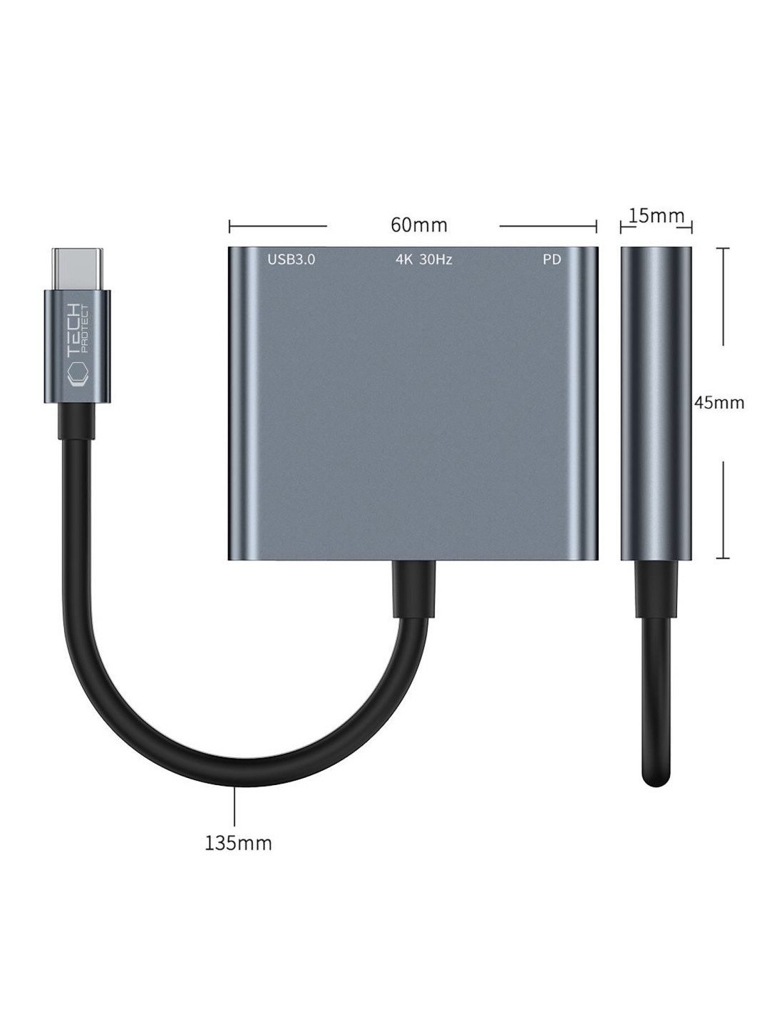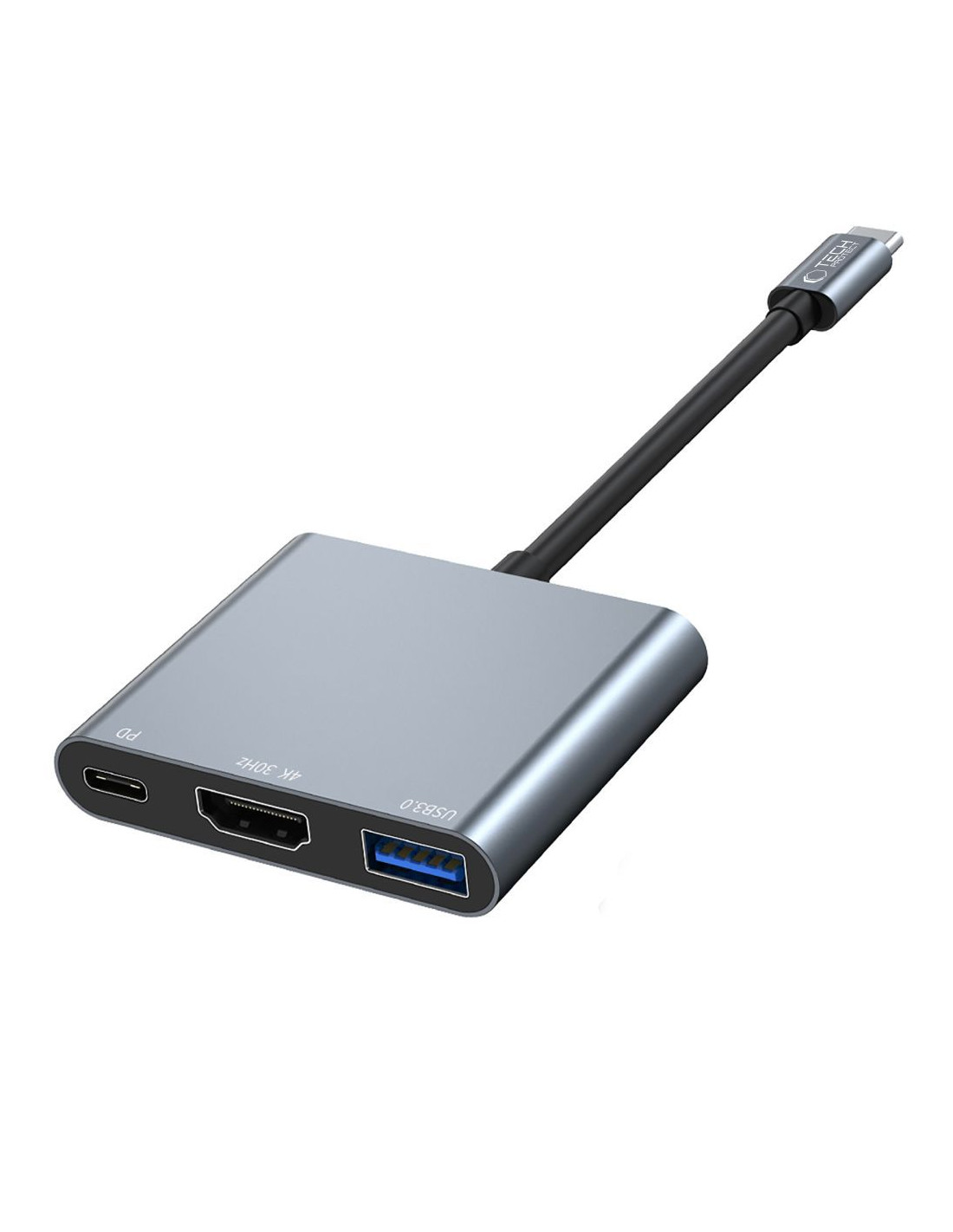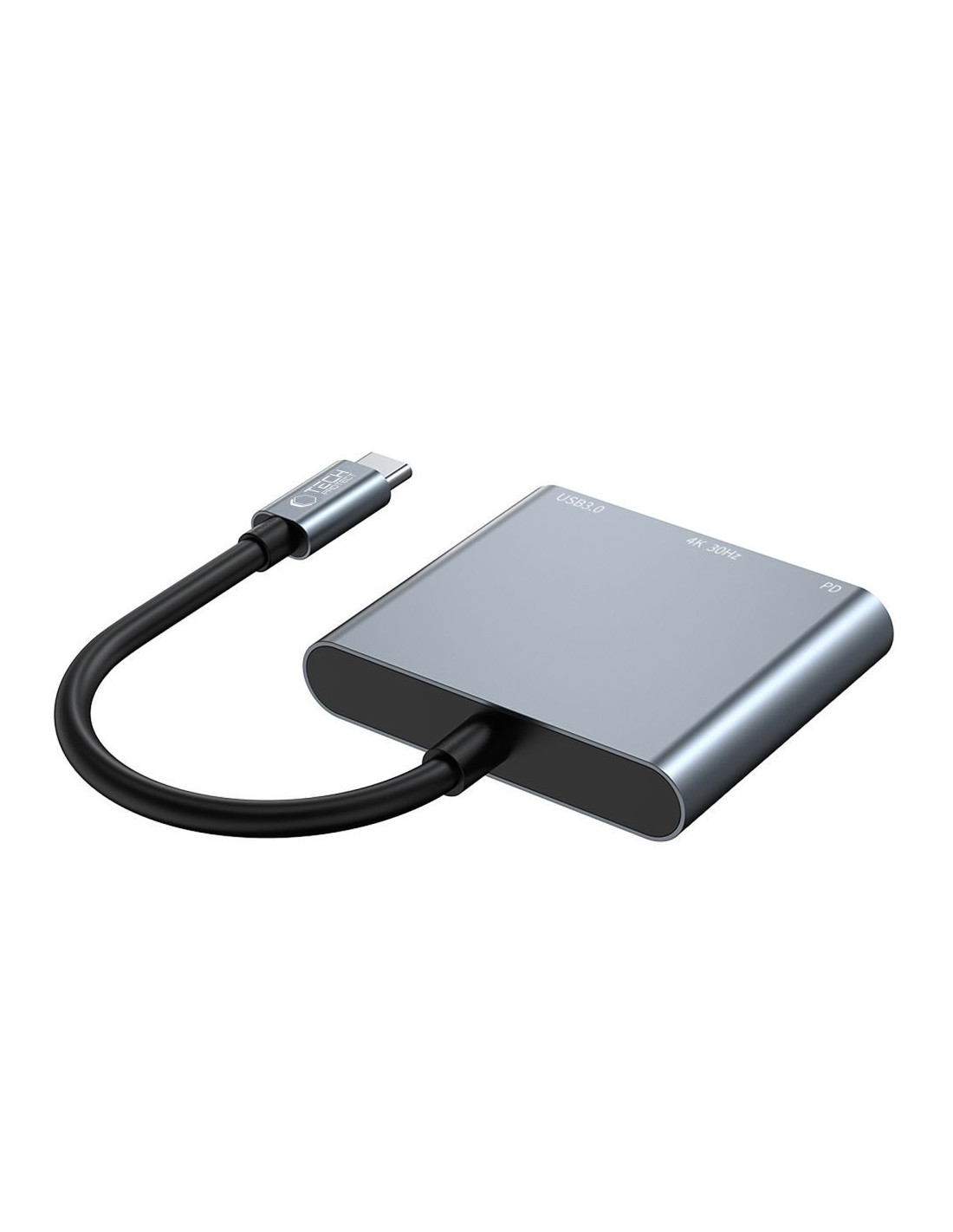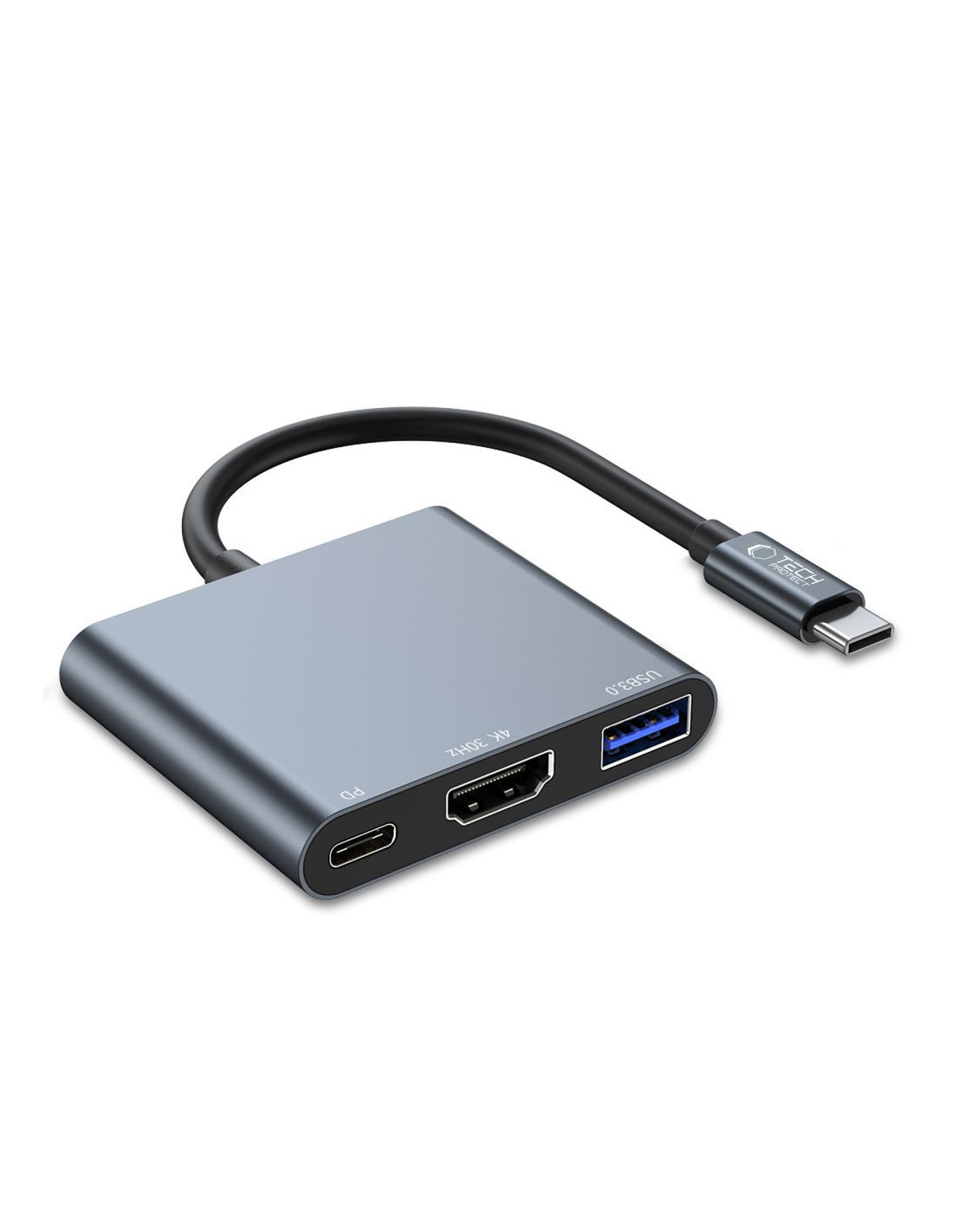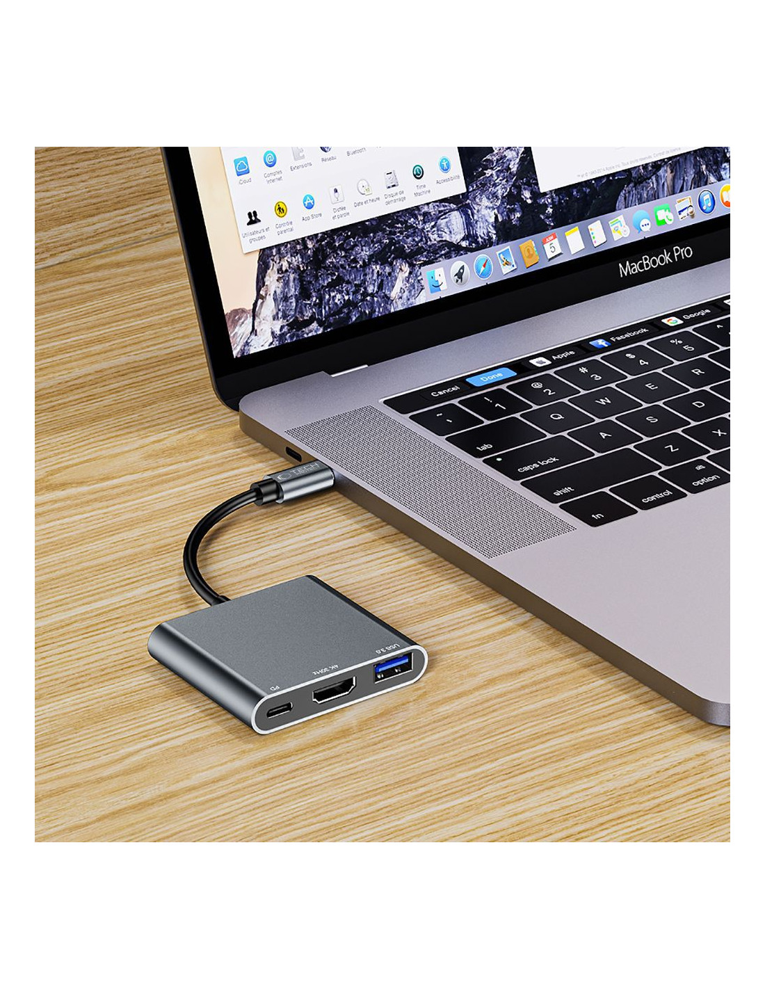 3in1 šakotuvas USB-C į USB-A skirstytuvas USB-C PD 100W HDMI 4K 30Hz - pilkas