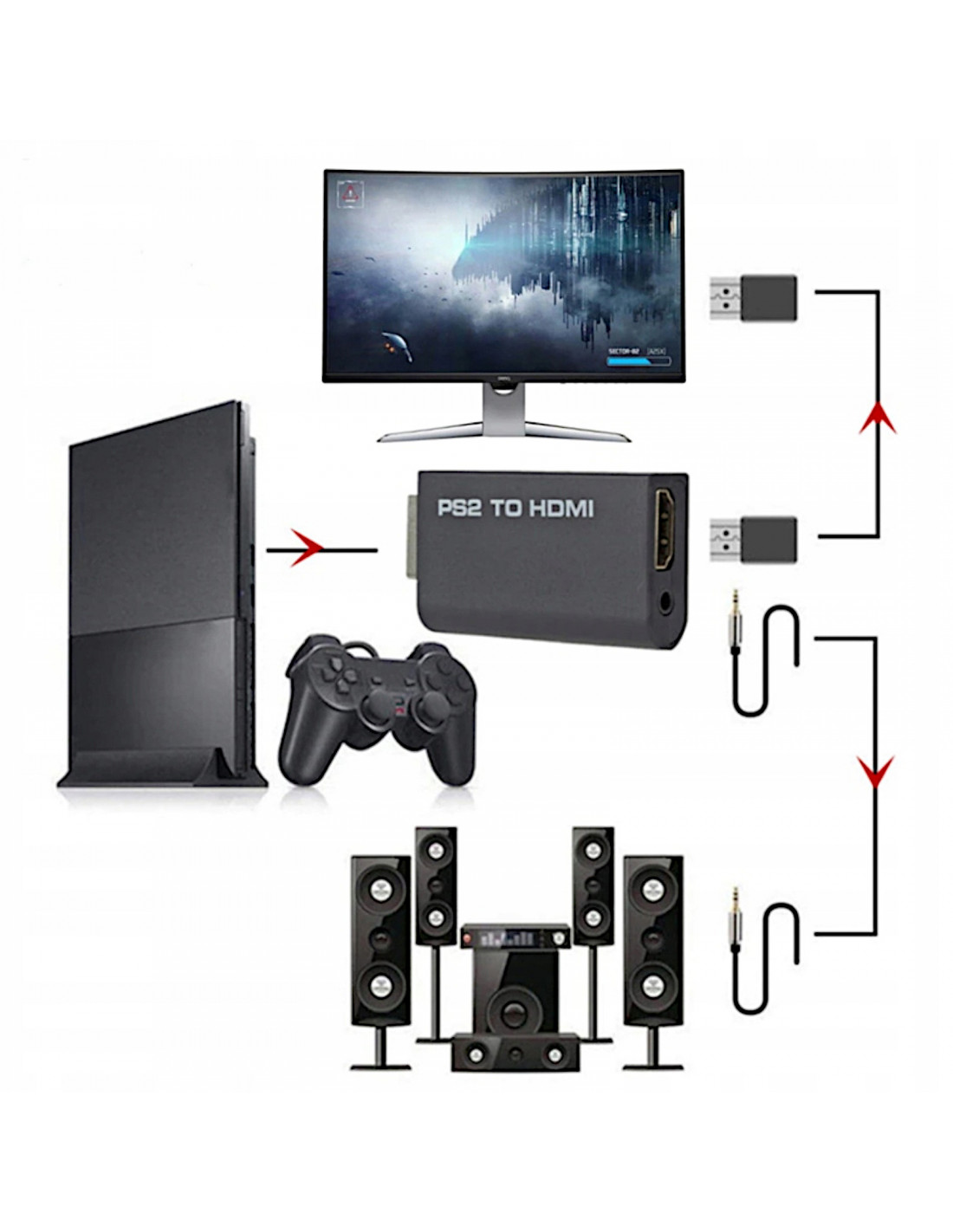 PS2–HDMI adapteris yra praktiškas sprendimas „PlayStation 2“ savininkams, norintiems žaisti moderniuose televizoriuose ir monitoriuose su HDMI prievadu. Įrenginys suderinamas su „PlugPlay“, todėl nereikia jokių papildomų tvarkyklių – tiesiog prijunkite ir žaiskite. Adapteris palaiko visus PS2 vaizdo režimus, užtikrina iki 1080p skiriamąją gebą ir leidžia prijungti ausines arba garsiakalbius per 3,5 mm garso lizdą. Maitinamas HDMI prievadu ir pasižymi kompaktišku dizainu, todėl yra patogus ir nešiojamas.