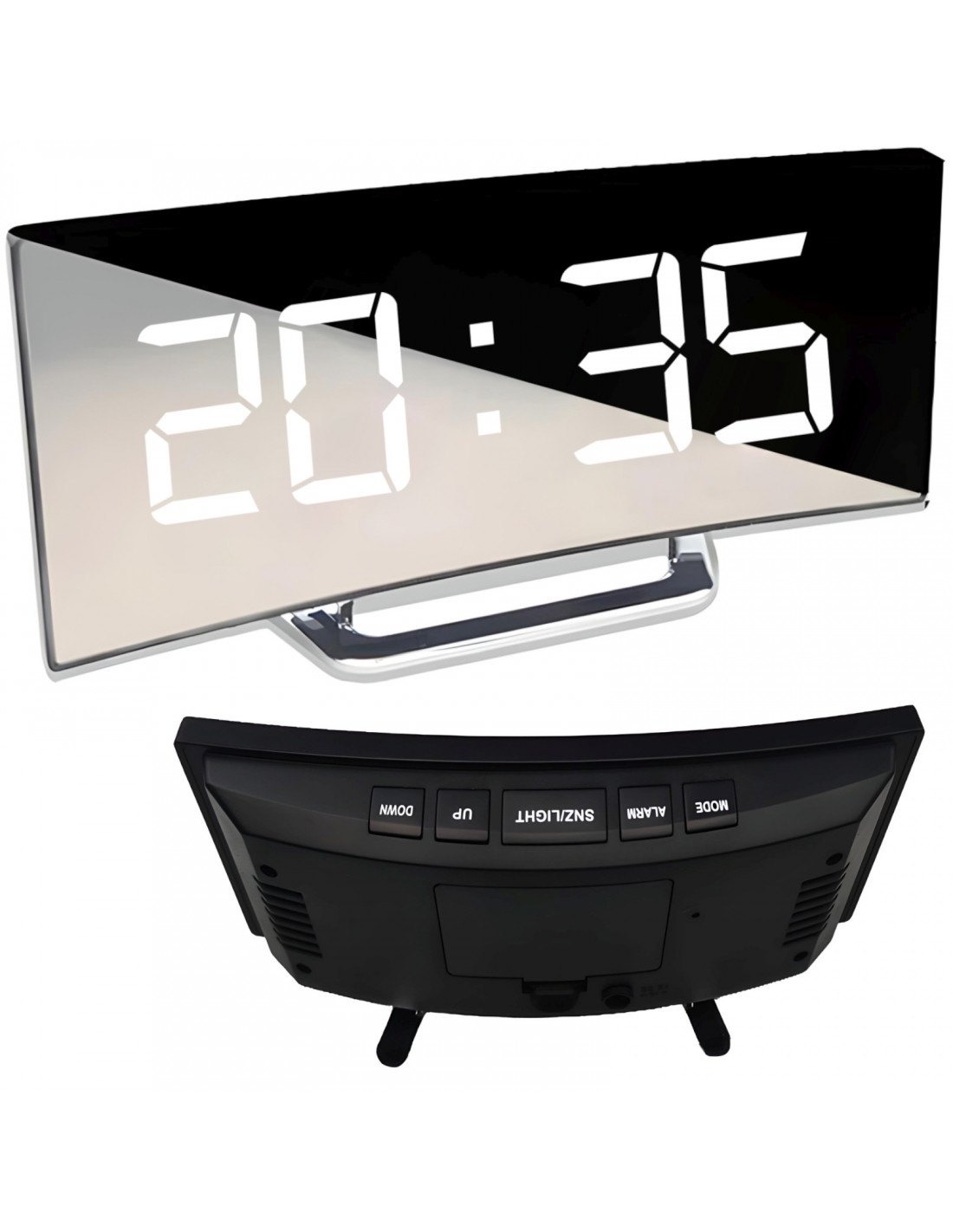 Šis LED elektroninis laikrodis su žadintuvo ir termometro funkcijomis yra modernus prietaisas, kuriame dera funkcionalumas ir estetika. Jame yra aiškus LED ekranas su baltu foniniu apšvietimu ir veidrodiniu paviršiumi , leidžiantis nuskaityti laiką, datą ir temperatūrą. Maitinamas iš elektros tinklo arba baterijų , jis puikiai tinka miegamajam, biurui ar svetainei. Jame yra žadintuvas su snaudimo funkcija, du ryškumo lygiai ir naktinis režimas. Penki funkciniai mygtukai yra lengvai naudojami.