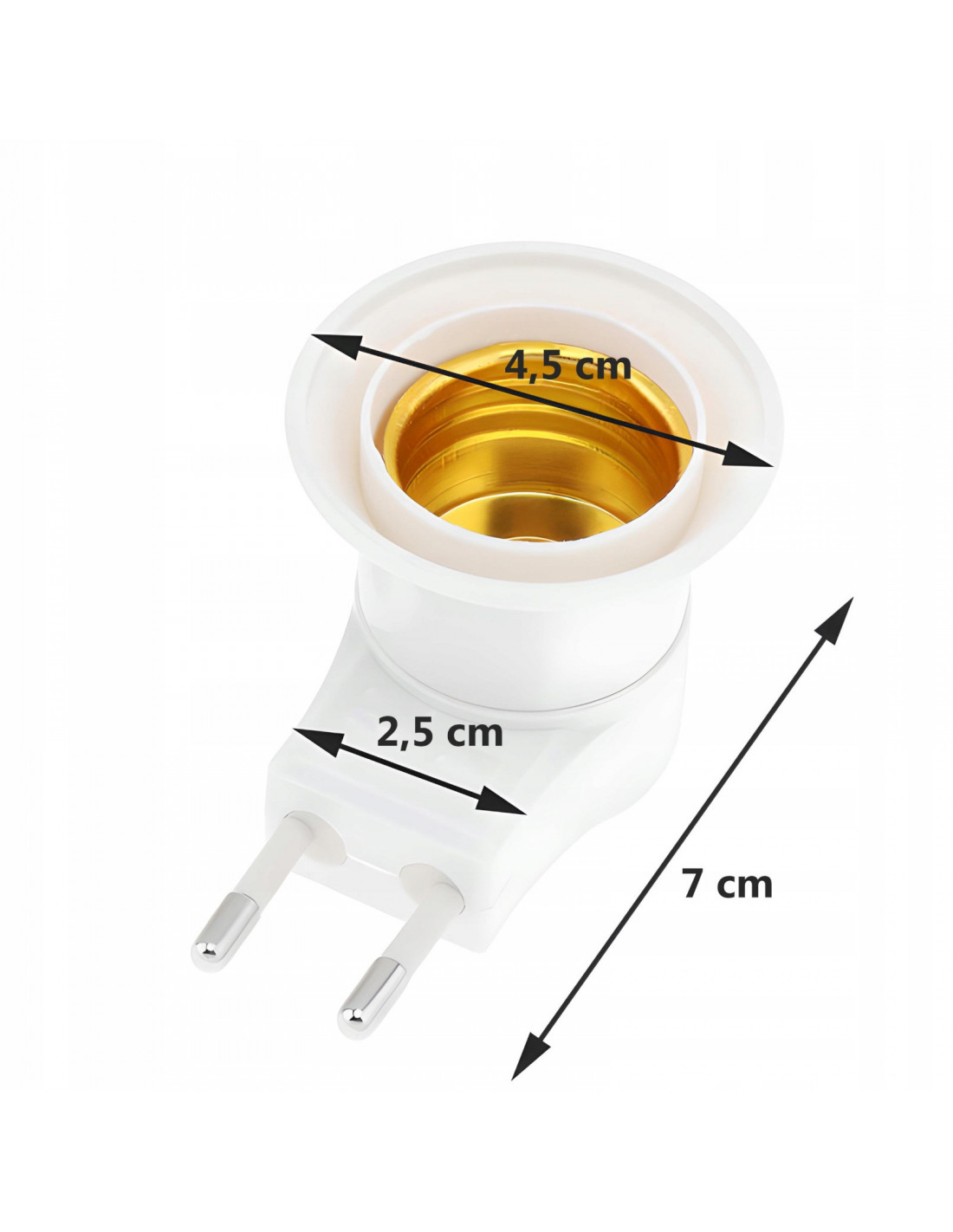 Šis adapteris leidžia tiesiogiai prijungti 230 V lemputę su E27 sriegiu prie sieninio lizdo . Jame yra praktiškas įjungimo/išjungimo jungiklis, leidžiantis valdyti apšvietimą neatjungiant prietaiso nuo lizdo. Jis puikiai tinka kaip tradicinės lempos pakaitalas, nes leidžia greitai ir patogiai naudoti įvairių tipų lemputes, įskaitant LED, energiją taupančias, tradicines ir dekoratyvines lemputes.