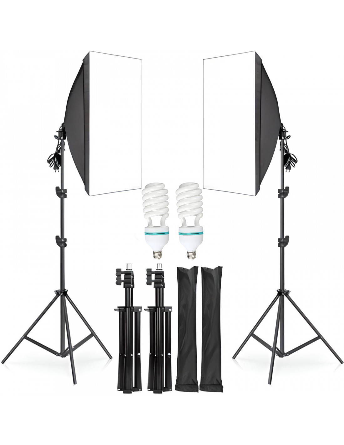 Šiame studijinio apšvietimo rinkinyje yra dvi švelnios dėžutės, kurios skleidžia švelnų ir tolygų apšvietimą, idealiai tinkantį portretinei, produktų ir kūrybinei fotografijai. 135 W lempos, kurių spalvos temperatūra yra 5500 K, garantuoja natūralią šviesą. Stovai yra reguliuojami, lengvi ir sulankstomi, todėl rinkinį lengva sumontuoti ir transportuoti. Lempos turi universalius E27 lizdus, o reguliuojamas spindulio kampas leidžia tiksliai nukreipti šviesą.
