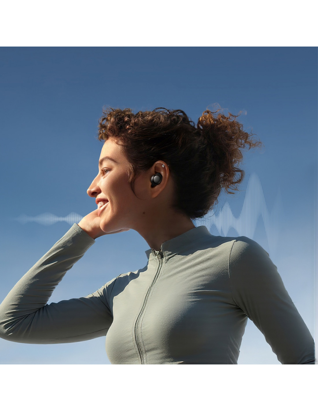 - - IPX5 atsparumas vandeniui: ausinės yra atsparios prakaitui ir vandens purslams, todėl puikiai tinka sportui ir veiklai lauke.