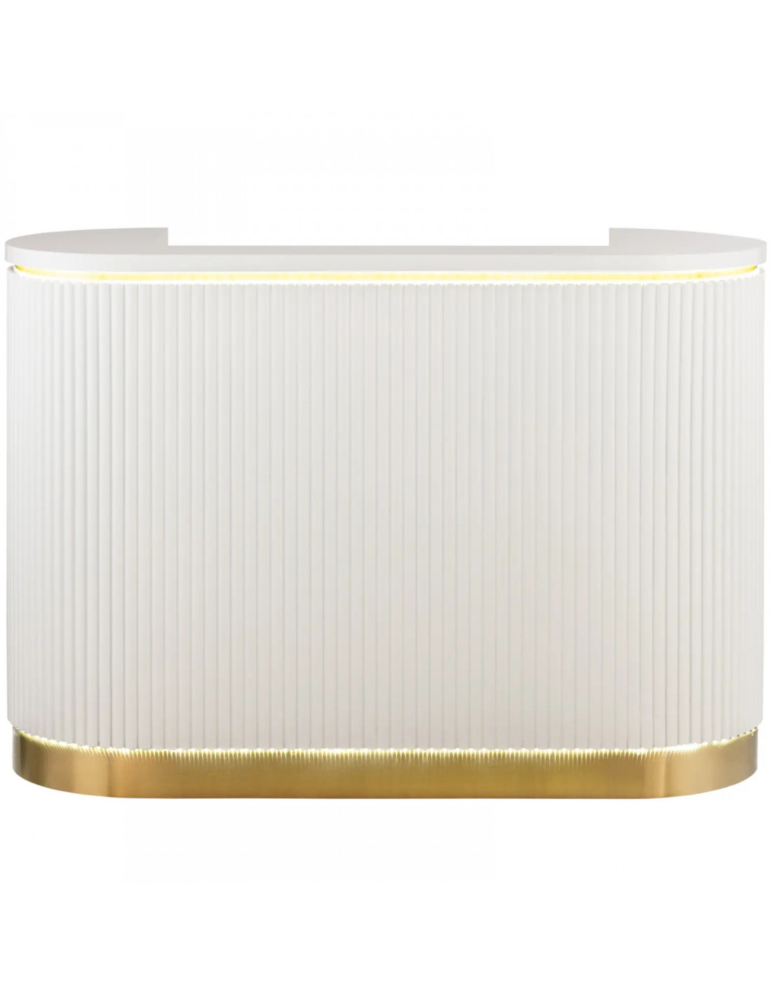 „Physa“ registratūros stalas, pasižymintis ekstravagantišku dizainu ir netiesioginiu LED apšvietimu, yra neįtikėtinai elegantiškas ir iš karto pritrauks klientų bei svečių dėmesį. Sumanus estetikos ir funkcionalumo derinys pavers registratūros zoną reprezentacine salono erdve. Stalo universalumas daro jį idealiu pasirinkimu įvairioms pramonės šakoms. Nesvarbu, ar tai biurai, viešbučiai, ar medicinos ir grožio salonai, stalas sklandžiai derės prie interjero ir pabrėš profesionalų įmonės charakterį. Praktiškas stalo dizainas siūlo daugybę skyrių ir stalčių, kuriuose yra daug vietos dokumentams ir priedams susidėti ir paslėpti. Rakinamas registratūros stalas apsaugo vertingus daiktus ir konfidencialius dokumentus nuo neteisėtos prieigos. Stalo patvarumą lemia tvirta konstrukcija ir aukštos kokybės medžiagų naudojimas. Net ir po ilgo naudojimo jo išvaizda išlieka nepriekaištinga.