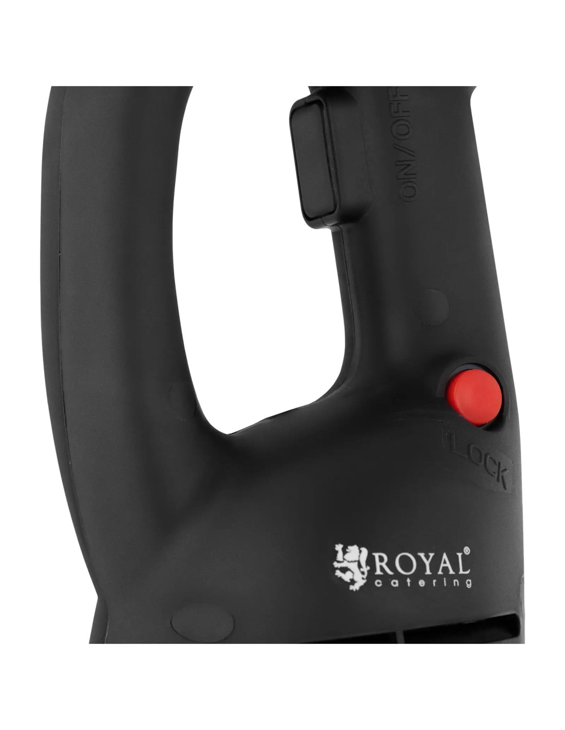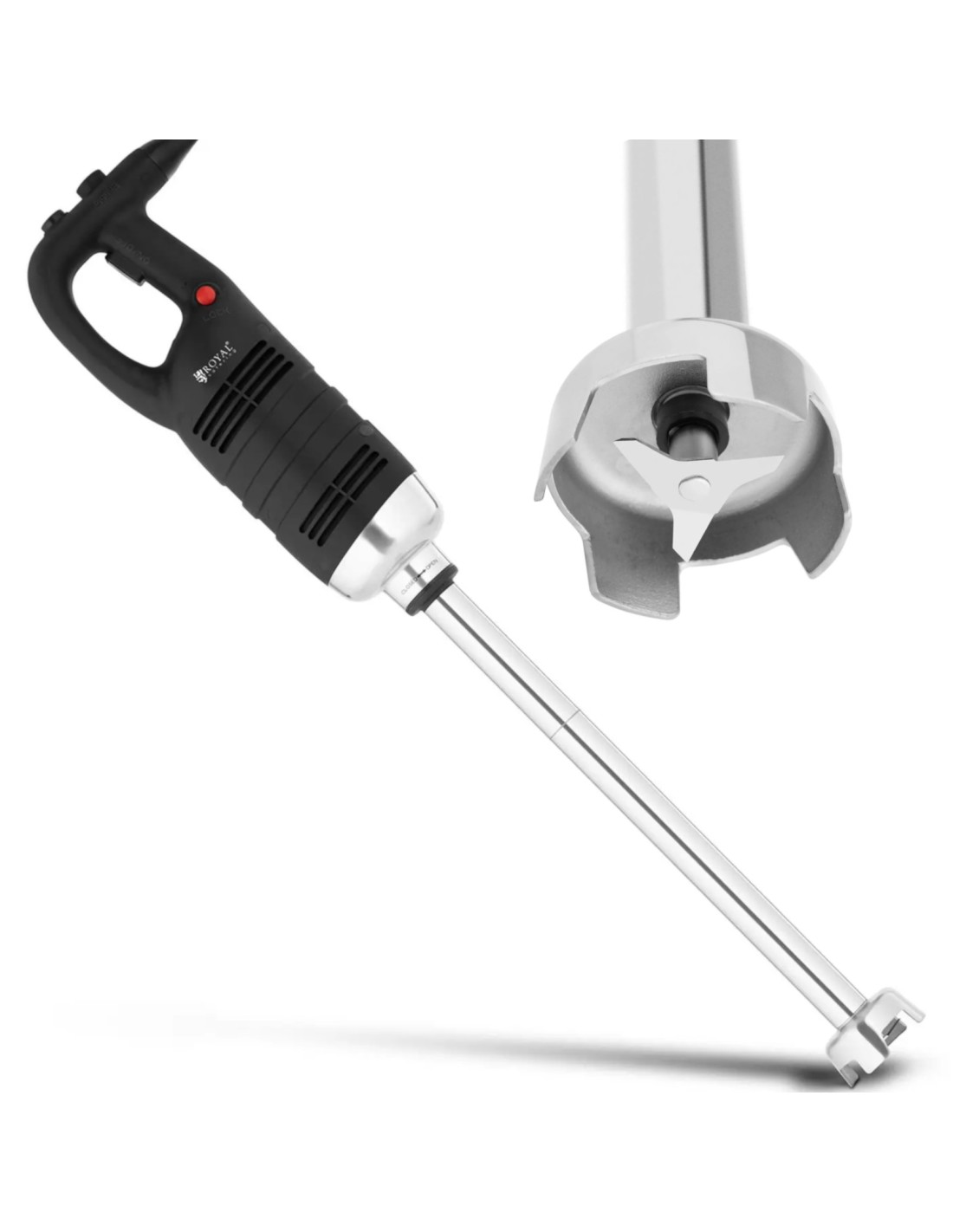 Royal Catering trintuvas leidžia paruošti kokteilį, sumaišyti sriubą ar greitai užburti skanų desertą. Puikiai tiks bet kuriame restorane, viešbutyje, bufete ar kavinėje. Blenderio rankena patogiai telpa rankoje. Valdymo mygtuku ant rankenos paleidžiamas 850 W variklis, kuris pasiekia 8000-18000 aps./min . Tai leidžia greitai ir efektyviai apdoroti iki 240 l . 25 minučių darbo ciklas su 10 minučių pertrauka maišytuvas idealiai tinka profesionaliam naudojimui didelėse virtuvėse, valgyklose ir restoranuose. Blenderio rankena pagaminta iš nerūdijančio plieno, yra 550 mm ilgio ir turi dangtelį gale, po kuriuo yra peiliukai. Apsauga nuo purslų leidžia dirbti švariai ir tiksliai supjaustyti visus ingredientus. 2,2 m ilgio laidas suteikia judėjimo laisvę dirbant. Rankenėlę galima patogiai nuimti nuo trintuvo ir pakeisti kitu antgaliu (galima įsigyti atskirai). Užraktas garantuoja maksimalų stabilumą ir saugumą. Maišymo elementą lengva valyti.