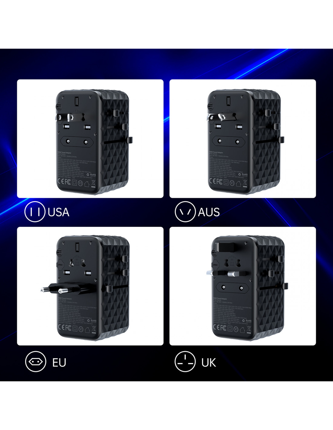 - - ES / JAV / AUS / JK kelioninio įkroviklio adapteris 2x USB-C 2x USB-A 100W - juodas