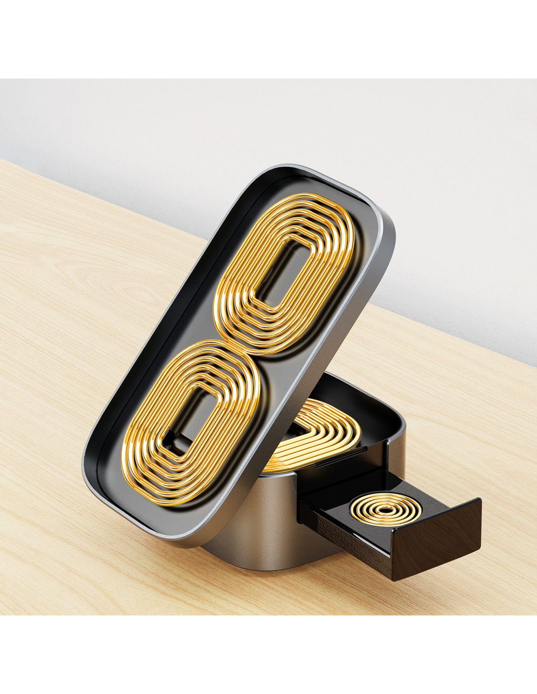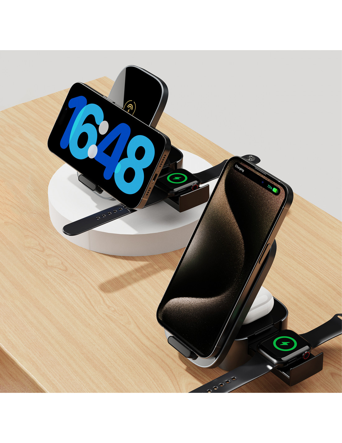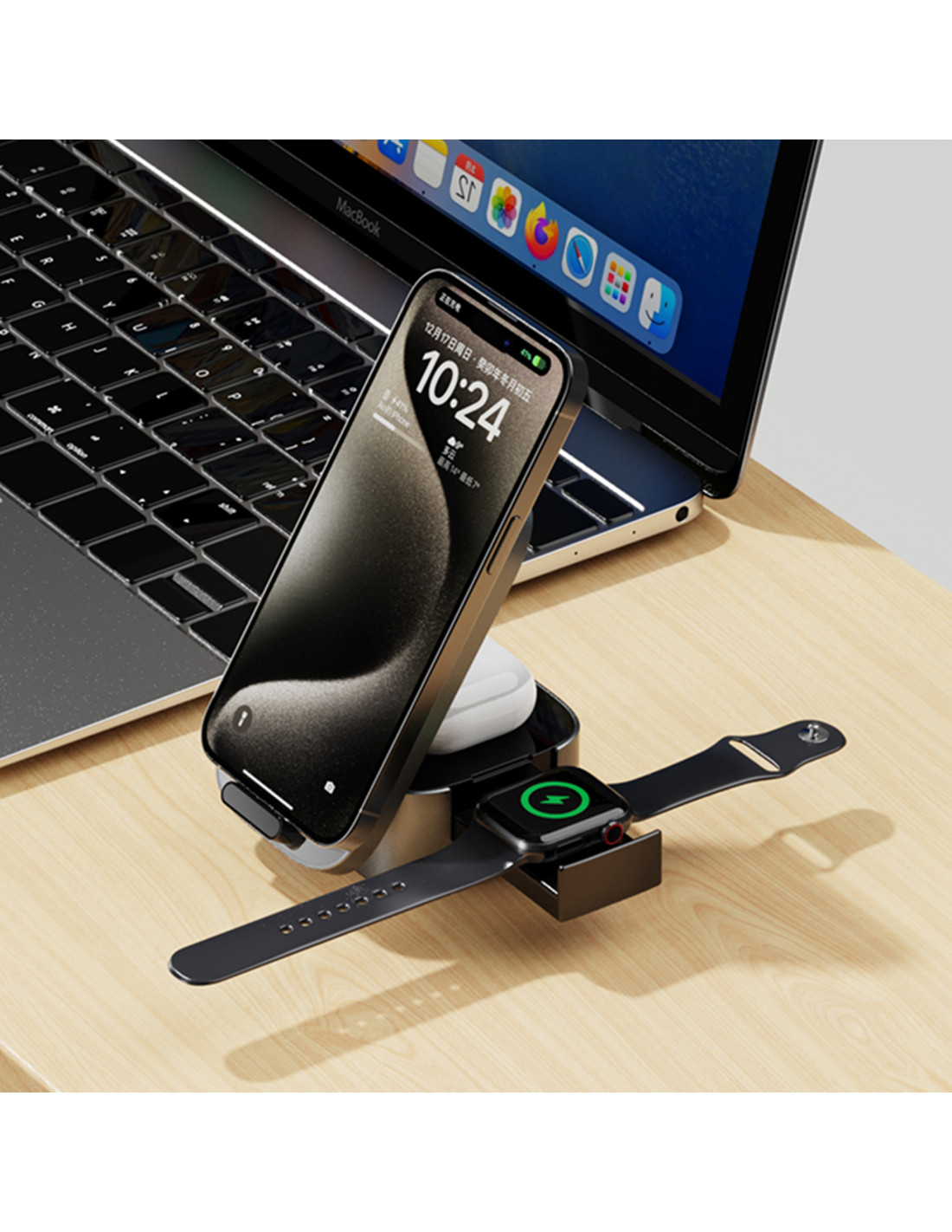 - - Leidžia vienu metu įkrauti tris įrenginius: galite įkrauti išmanųjį telefoną, išmanųjį laikrodį ir ausines,