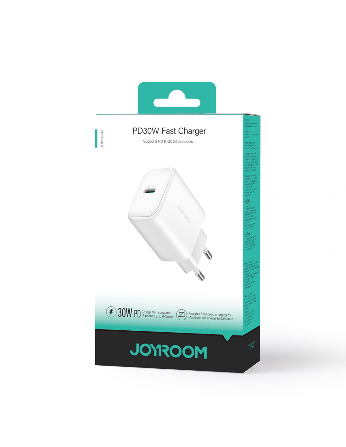 „Joyroom JR-TCF24“ sieninis įkroviklis leidžia įkrauti įrenginius iki 6 kartų greičiau. Palaikydamas naujausius įkrovimo protokolus, tokius kaip „Power Delivery“, „Quick Charge 3.0“ ir „Samsung Super Fast Charging“, jūsų įrenginiai bus paruošti naudoti rekordiškai greitai. „Joyroom JR-TCF24“ tieks jums reikalingą energiją reikiamu greičiu – nesvarbu, ar turite „iPhone“, „Samsung“ ar kitą išmanųjį telefoną.