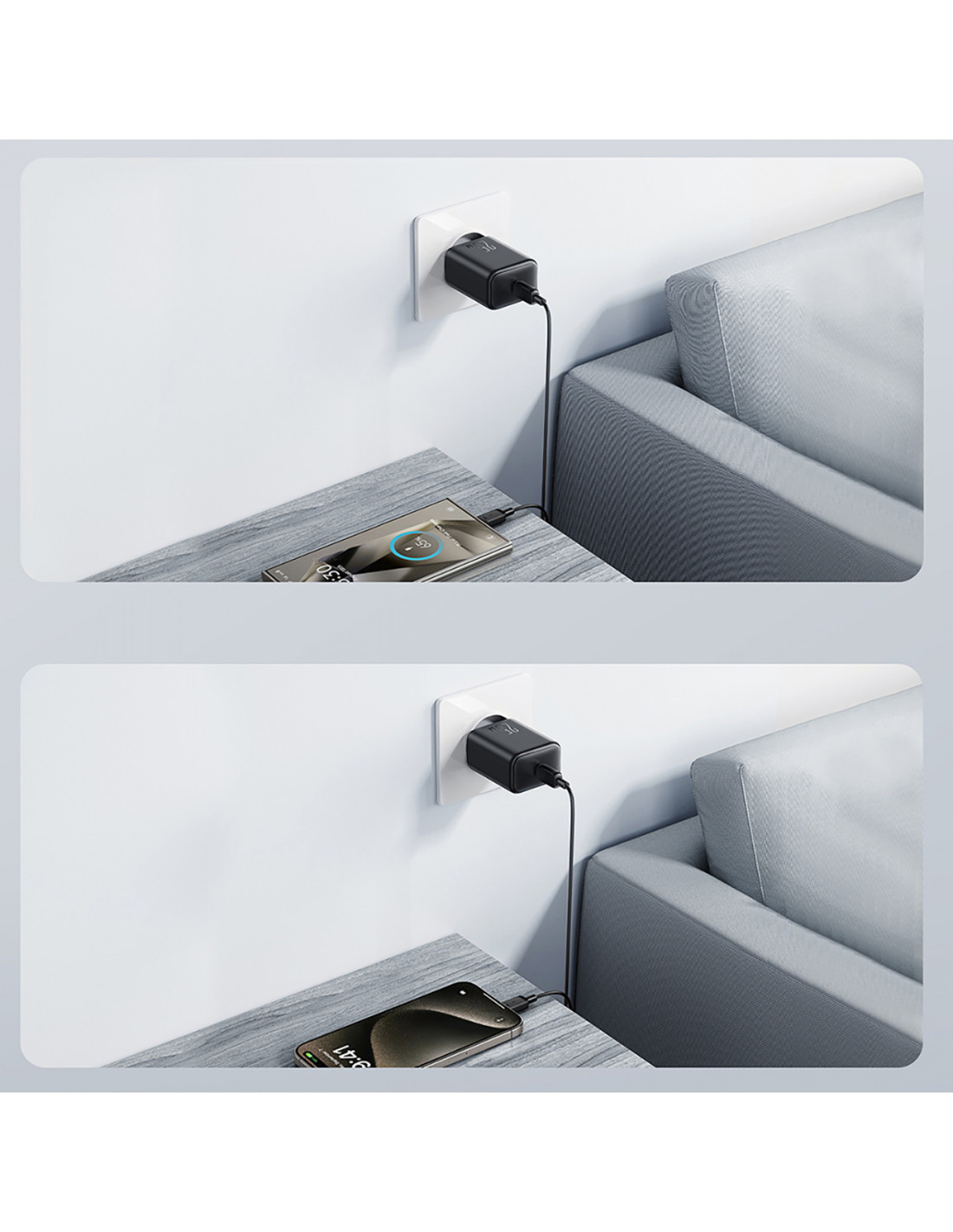- - USB-C 25W SFC PPS PD sieninis įkroviklis - juodas
