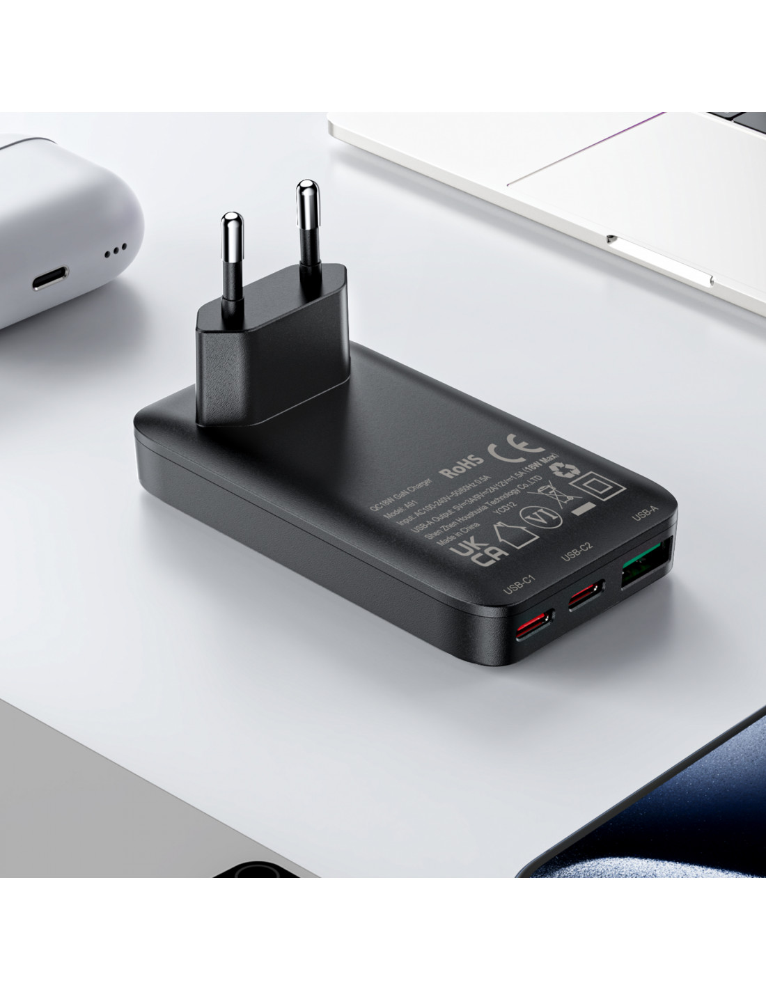 - - GaN technologija – Dėl GaN (galio nitrido) naudojimo įkroviklis yra mažesnis, efektyvesnis ir atsparesnis perkaitimui, o tai užtikrina ilgalaikį ir saugų veikimą.