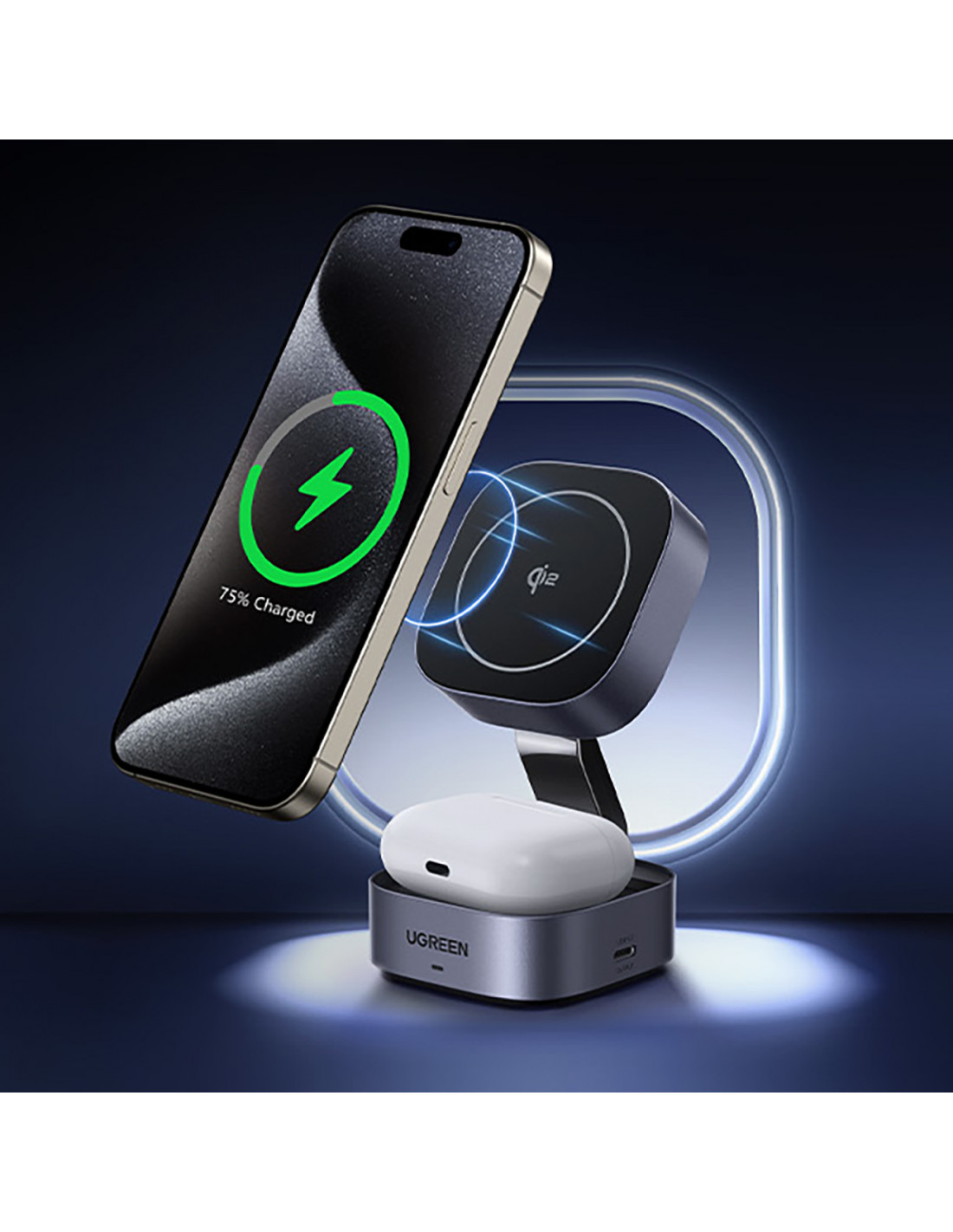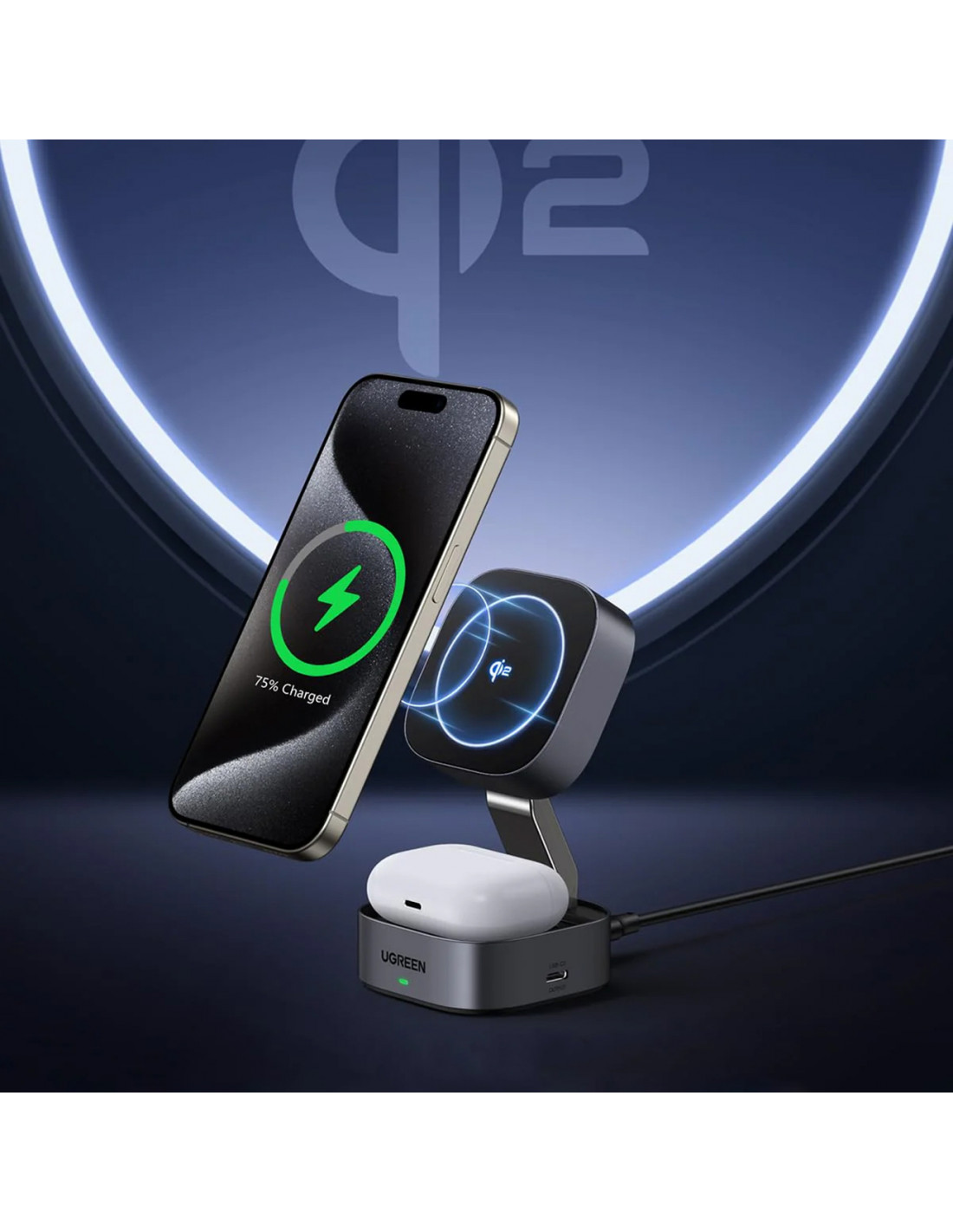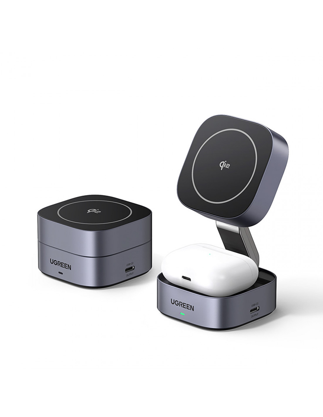 Jums nebereikia rinktis, kurį įrenginį įkrauti pirmiausia. „Ugreen W702“ yra 3 viename įrenginys, leidžiantis belaidžiu būdu įkrauti telefoną ir „AirPods“ ausines vienu metu. Papildomas USB-C prievadas leidžia įkrauti laikrodį ar kitus įrenginius laidu. Dėl plataus suderinamumo įkroviklis veikia su įvairiais „iPhone“ modeliais, „AirPods“, „Galaxy Buds“ ausinėmis ir „Qi“ palaikančiais įrenginiais.