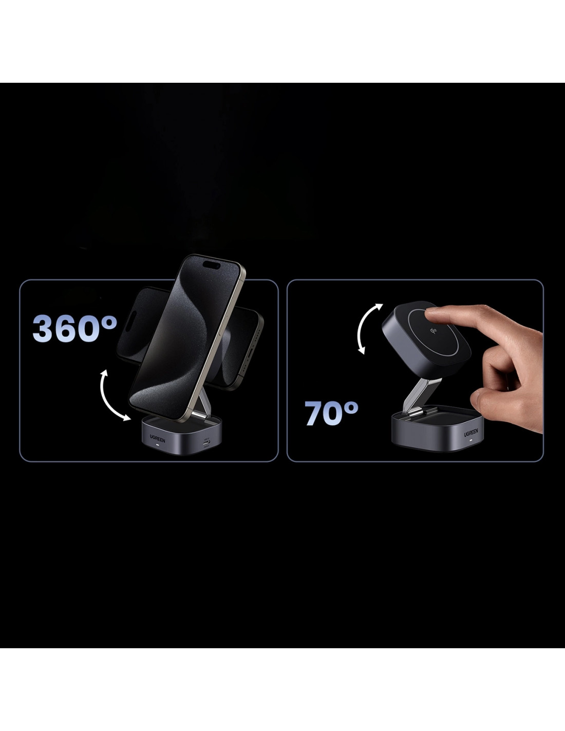 Kelionės su elektronikos prietaisais gali būti varginančios, bet ne su belaidžiu „Ugreen W702“ įkrovikliu. Dėl kompaktiško ir sulankstomo dizaino jį lengva sulankstyti į mažą kvadratą, todėl jis lengvai telpa į bet kokį krepšį. Be to, dėl reguliuojamo aukščio ir kampo jį patogu naudoti bet kur. Puikiai tinka dažnai keliaujantiems, kuriems reikia patikimo įkrovimo sprendimo savo įrenginiams.