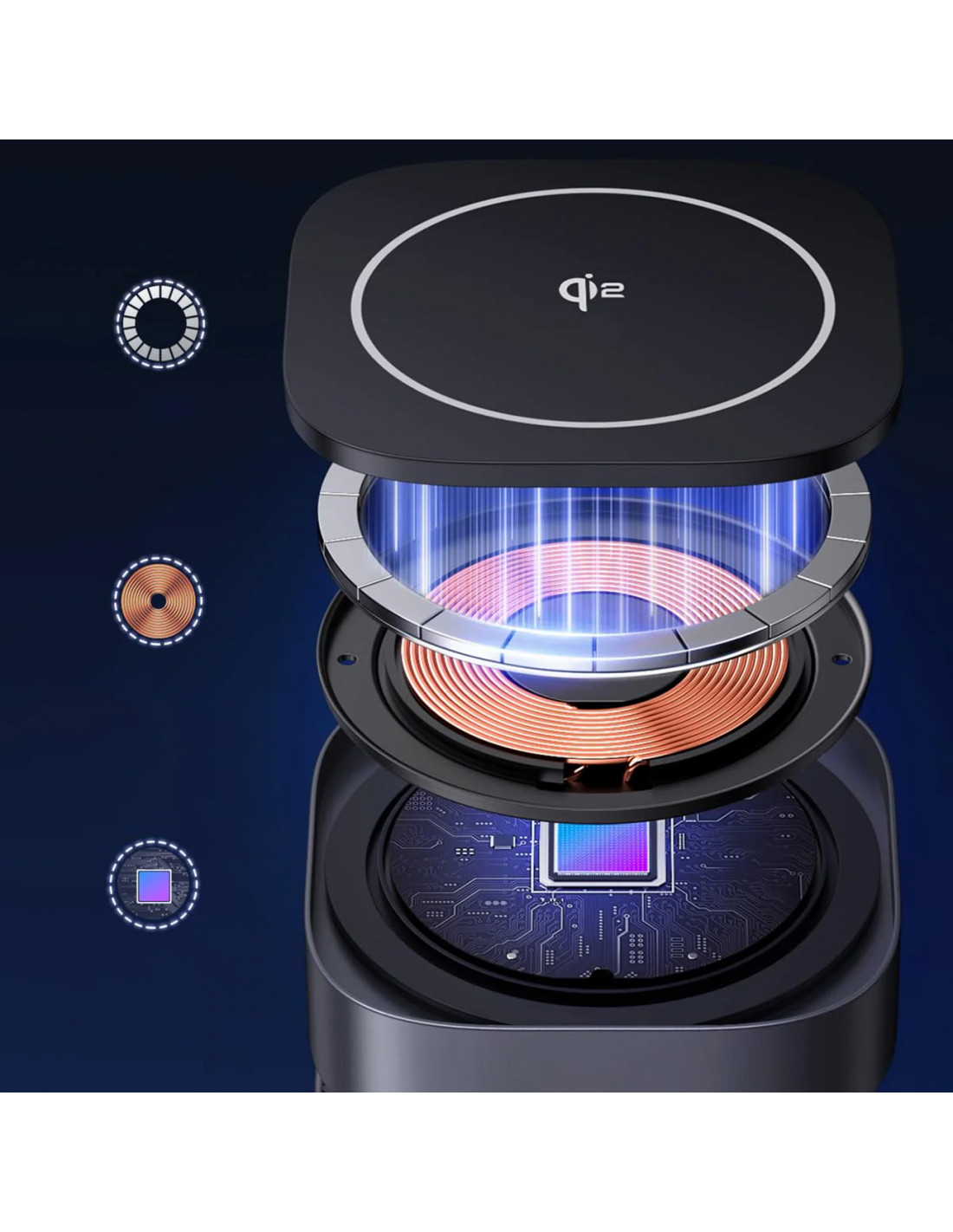 - – Užtikrina itin greitą įkrovimą su naujausiais „Qi2“ ir „MagSafe“ greitojo įkrovimo sertifikatais . Įkrauna „iPhone“ maksimalia 15 W galia, t. y. greičiau nei standartiniai 7,5 W įkrovikliai.
