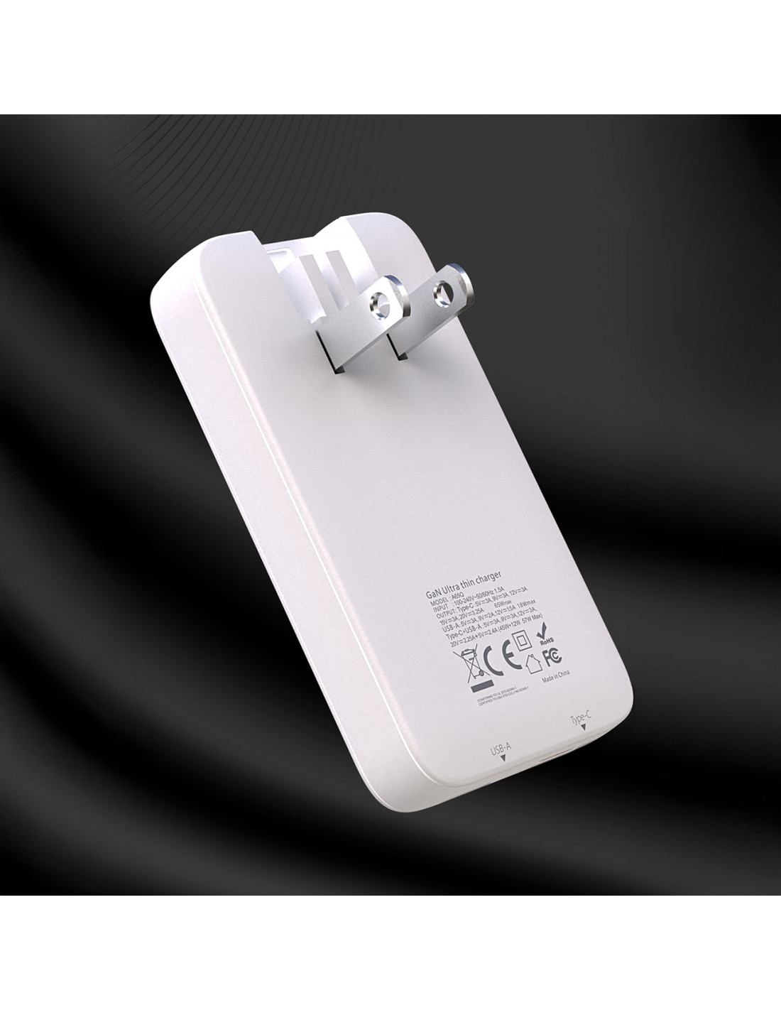 - - Itin plonas GaN 65W USB-A USB-C PD ES/JAV kelioninis sieninis įkroviklis - baltas