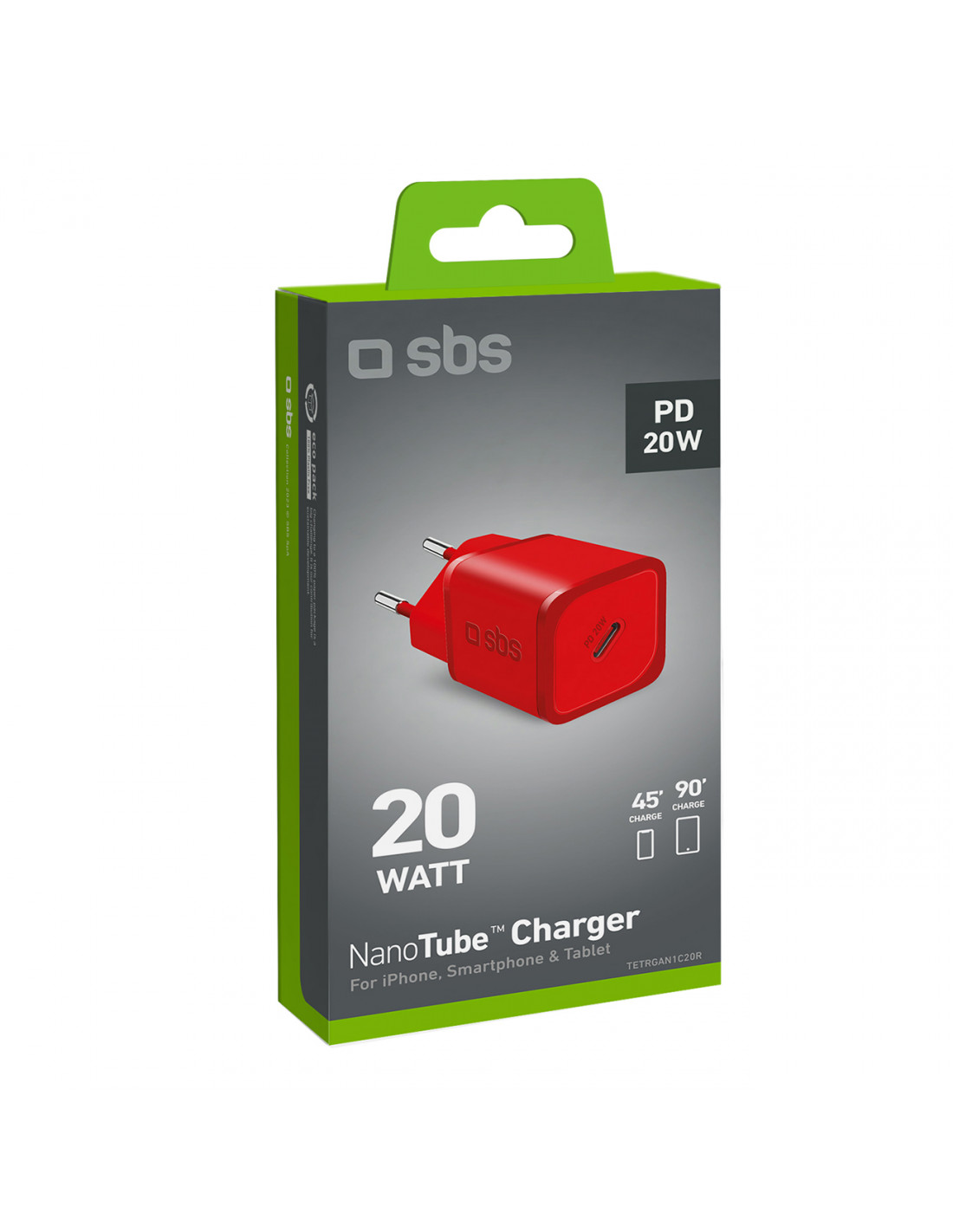 Įkroviklis SBS TETRGAN1C20R su maitinimo šaltiniu leidžia itin greitai įkrauti suderinamus įrenginius, kontroliuojant tiekiamą energiją, kad būtų išvengta perkaitimo ir trumpojo jungimo. Įkraukite savo išmanųjį telefoną vos per 45 minutes!