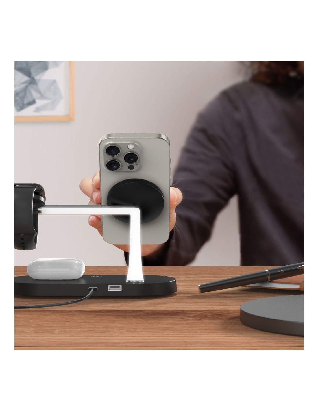 3 viename belaidis įkroviklis išmaniajam telefonui, išmaniajam laikrodžiui ir ausinėms su „MagSafe“ – juodas