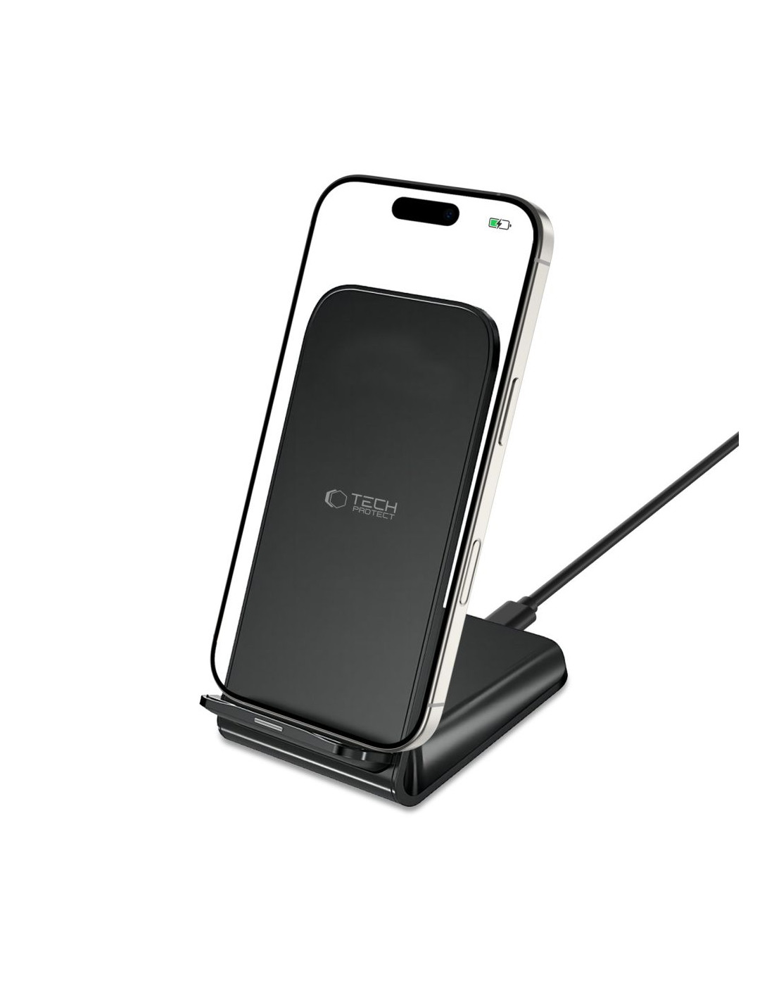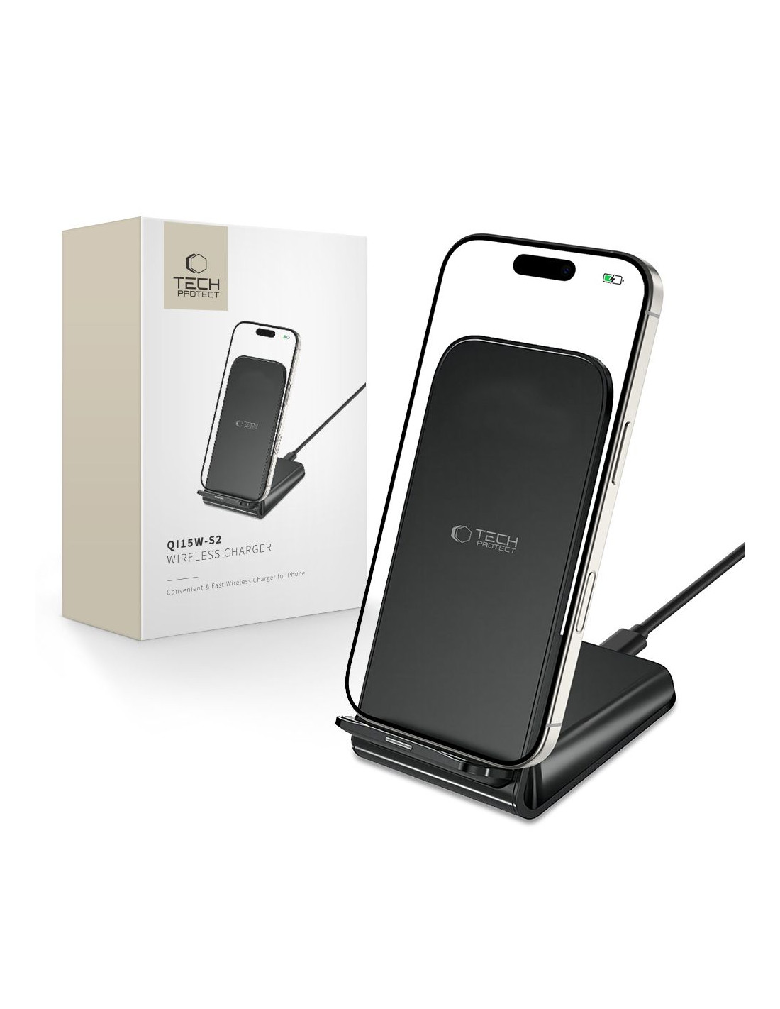 „S2“ yra patikimos „Tech-Protect“ indukcinių įkroviklių serijos tęsinys. Šis priedas sujungia patogų stovą su galimybe greitai ir saugiai įkrauti išmanųjį telefoną. Integruota ritė leidžia įkrauti tiek vertikalioje, tiek horizontalioje padėtyje. Pagamintas iš aukštos kokybės PC ir ABS komponentų, jis yra patvarus ir elegantiškas, pasižymi minimalistiniu, kompaktišku dizainu – matinė apdaila apsaugo nuo pirštų atspaudų ir pabrėžia elegantišką siluetą. Tiek dugnas, tiek pagrindas yra padengti neslystančia medžiaga, užtikrinančia, kad įkroviklis tvirtai laikytųsi vietoje ir neleistų telefonui slysti. Apsauginė sistema apsaugo prijungtus įrenginius nuo perkaitimo ir viršįtampio , palaikydama pastovią žemą temperatūrą įkrovimo metu. Todėl net palikti įrenginius ant įkroviklio kelias valandas yra visiškai saugu.