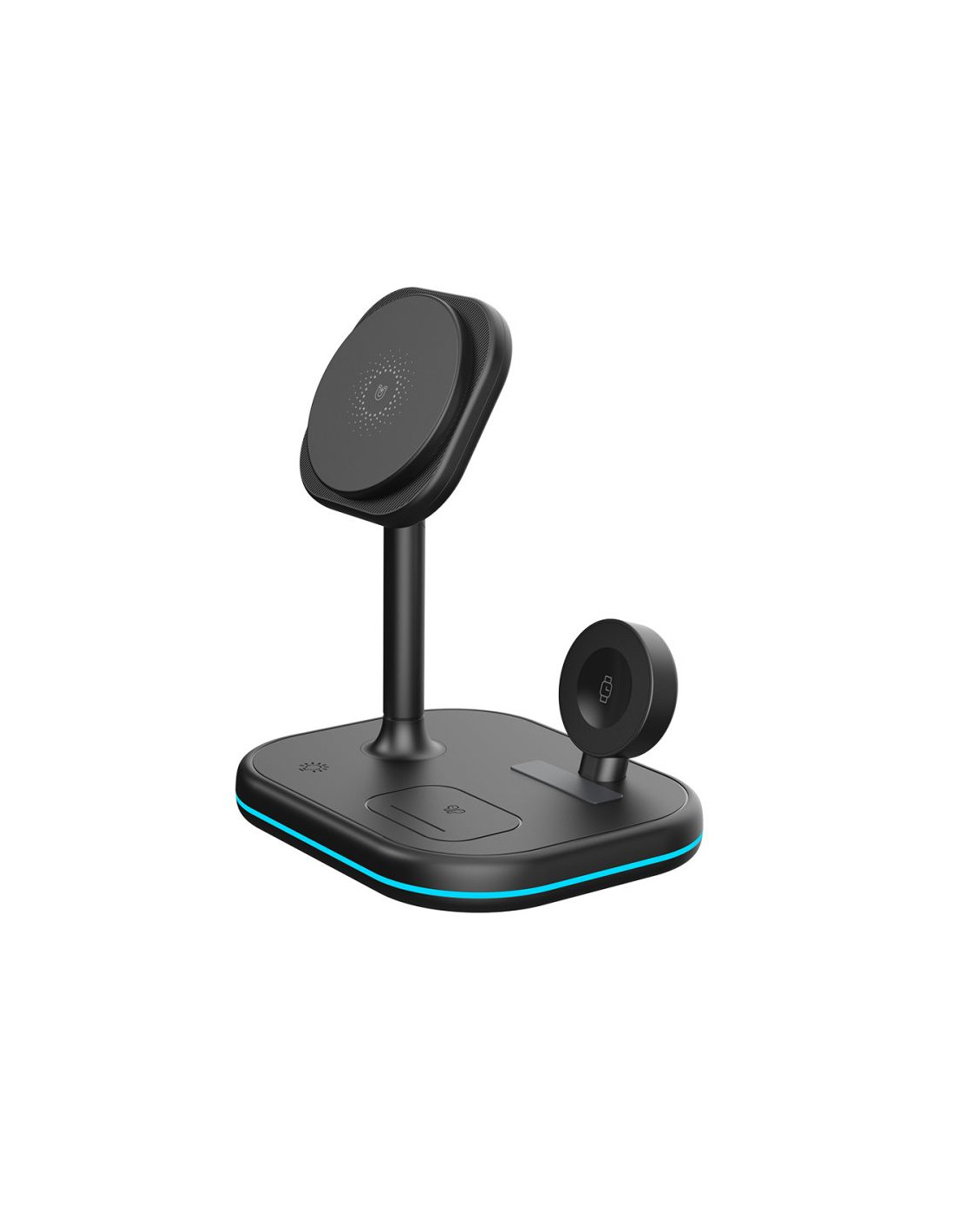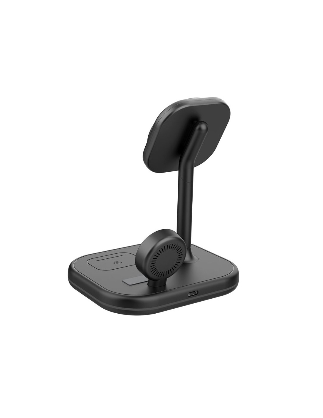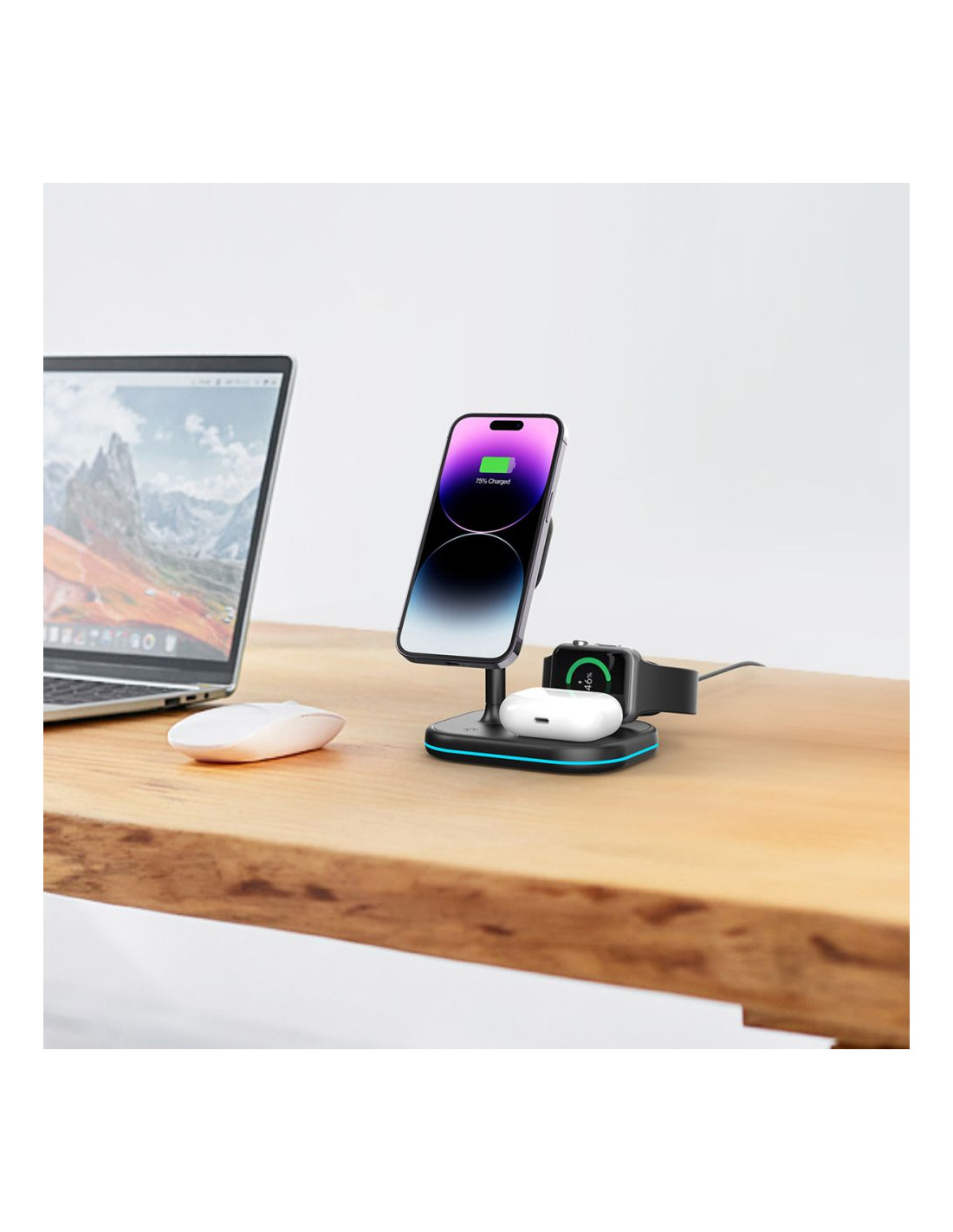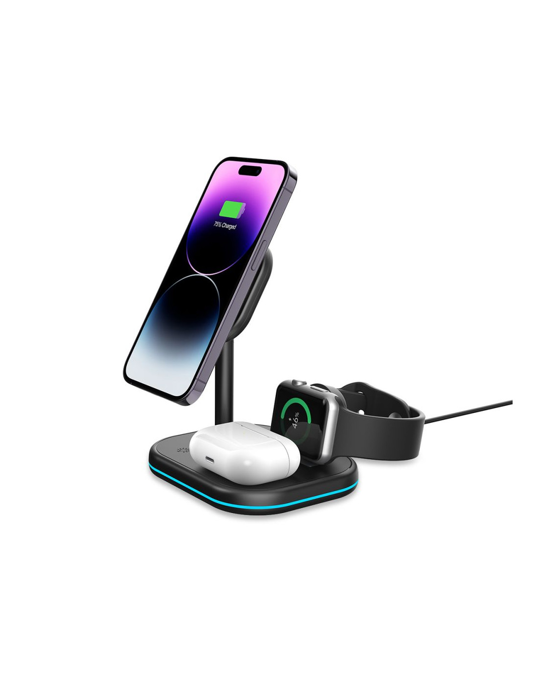 3 viename „MagSafe“ belaidis įkroviklis su išmaniojo telefono laikikliu, skirtas „Apple Watch AirPods“ – juodas