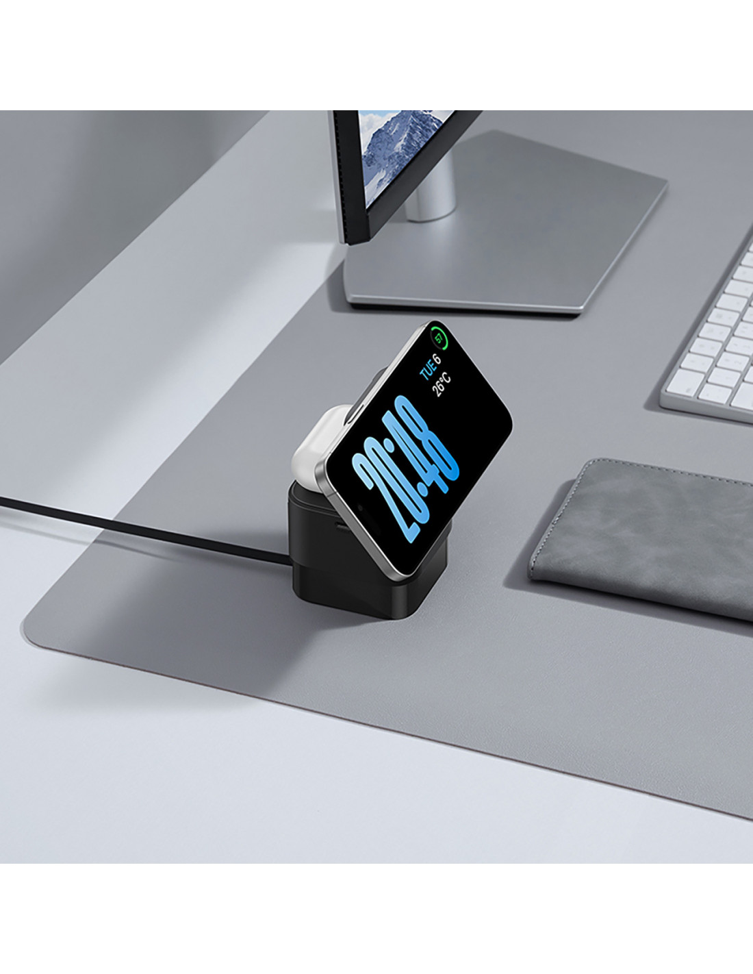 • - Trys įrenginiai vienu metu: įkraukite išmanųjį telefoną, ausines ir išmanųjį laikrodį vienu metu – patogiai ir be laidų.