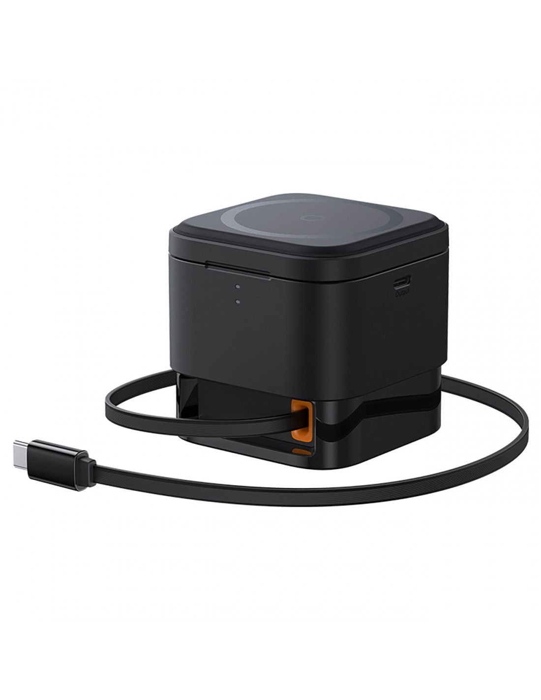 - - Kompaktiškas dizainas: telpa delne ir visada atrodo tvarkingai dėl ištraukiamo USB-C laido.