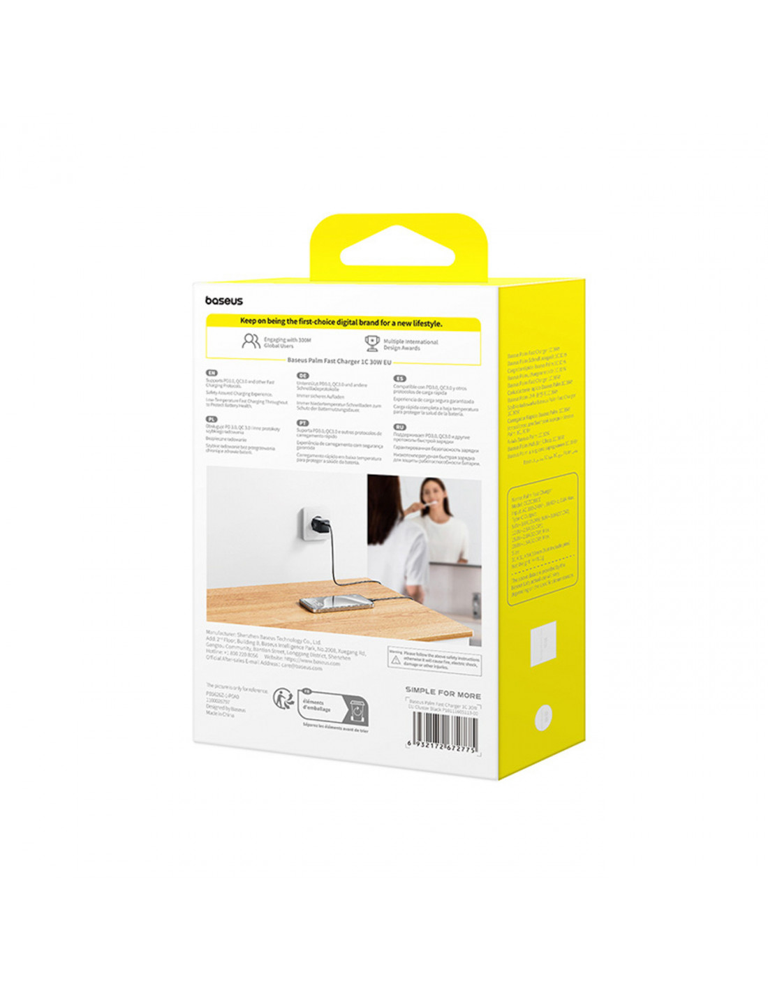 „Baseus Palm 30W“ yra kompaktiškas sieninis įkroviklis su vienu USB-C prievadu , kuris užtikrina greitą ir saugų maitinimą jūsų įrenginiams. Palaikydamas 30 W „Power Delivery“ technologiją, įkroviklis automatiškai pritaiko įkrovimo parametrus prie prijungto įrenginio – išmaniojo telefono, planšetinio kompiuterio, ausinių ar išorinės baterijos. Dėl tvirtos konstrukcijos ir mažo dydžio jis puikiai tinka namams, darbui ir kelionėms. „Baseus Palm 30W“ pasižymi išmaniuoju energijos valdymu ir daugiapakopiu apsauga, užtikrinančiu patikimą veikimą be perkaitimo ar įtampos šuolių rizikos. Tai puikus pasirinkimas vartotojams, kurie vertina paprastumą, efektyvumą ir modernius sprendimus.
