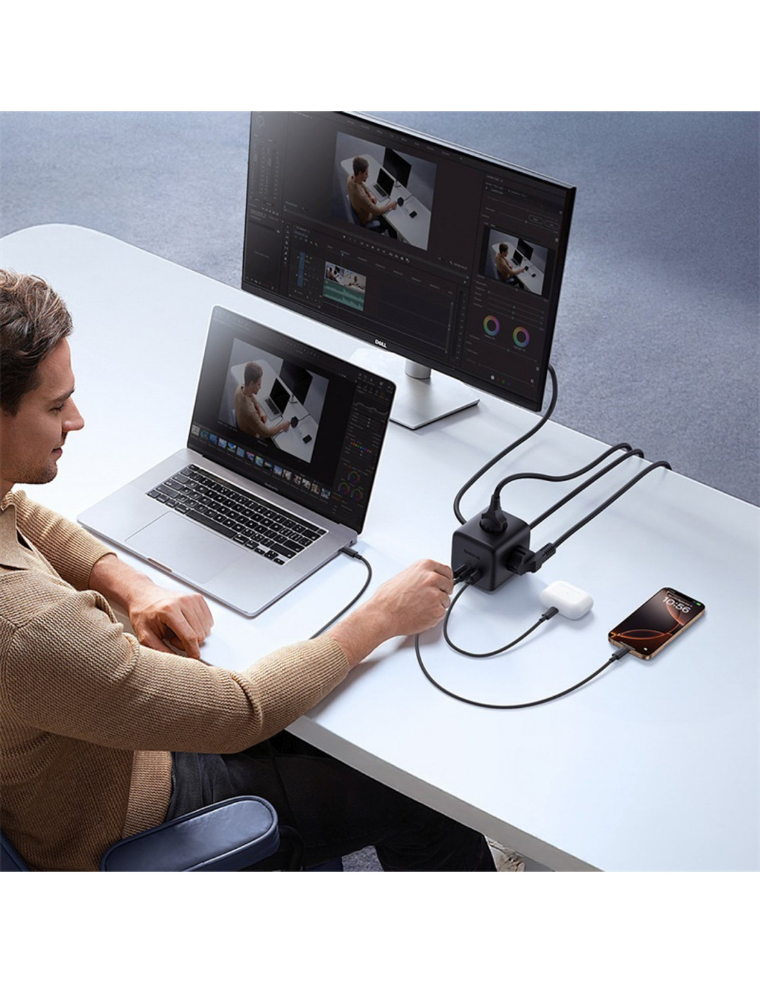 „Baseus EnerFill FA11“ – tai kompaktiškas ir galingas maitinimo blokas, užtikrinantis maksimalų funkcionalumą minimalistiniu dizainu. Kubinis dizainas leidžia patogiai išdėstyti prievadus kiekvienoje pusėje, taip sumažinant laidų raizgalą ir supaprastinant darbo stotį. Integruotas mygtukas leidžia akimirksniu išjungti maitinimą, taip padidinant saugumą. Dėl „GaN6“ technologijos ir komponentų sandarinimo proceso, ilgintuvas veikia stabiliai net esant didelėms apkrovoms ir užtikrina puikų aušinimą. Papildomas tvirtinimo laikiklis su lipnia juosta ir varžtais leidžia juostelę padėti po stalu arba ant sienos – būtent ten, kur jums jos reikia. „EnerFill FA11“ yra puikus pasirinkimas tiems, kurie ieško estetiško, saugaus ir daugiafunkcinio maitinimo sprendimo.