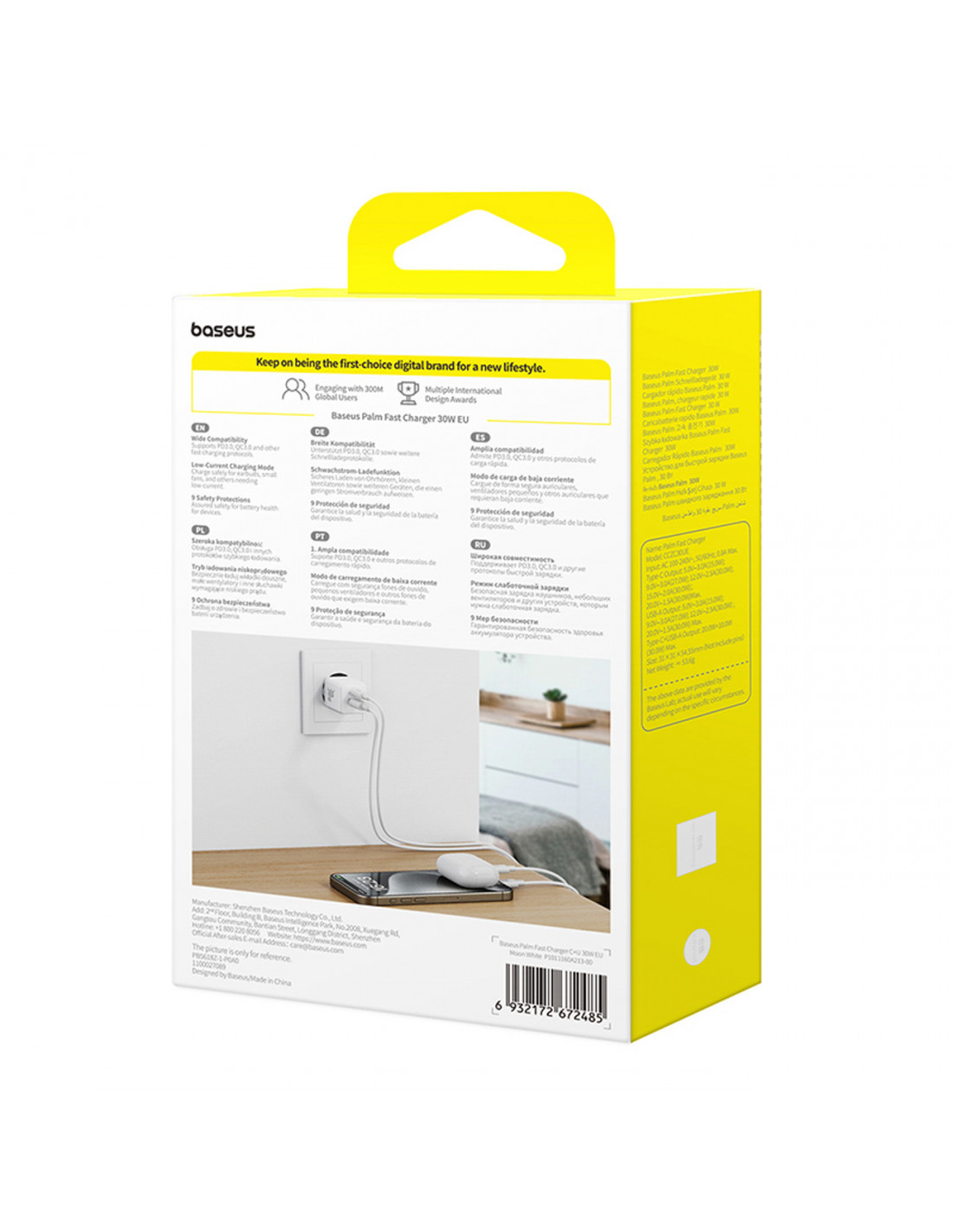 „Baseus Palm 30W“ yra kompaktiškas ir galingas sieninis įkroviklis, užtikrinantis greitą ir saugų maitinimą jūsų įrenginiams – nuo išmaniųjų telefonų iki nešiojamų ventiliatorių. Jis palaiko populiarius greito įkrovimo standartus, įskaitant „Power Delivery 3.0“ ir „Quick Charge 3.0“ , siūlydamas maksimalią 30 W galią per du prievadus – USB-C ir USB-A . Dėl kompaktiško dydžio ir mažo svorio jis puikiai tinka tiek namams, tiek kelionėms, taupydamas vietą jūsų krepšyje ar maitinimo lizde. „Baseus BCT“ aušinimo technologija garantuoja saugų ir efektyvų įkrovimą net ir esant dideliam naudojimui – naudojant nanotechnologijas greitam šilumos išsklaidymui. Šis išmanus sprendimas turi 9 pakopų apsaugos sistemą, kuri apsaugo jūsų įrenginius bet kokioje situacijoje.