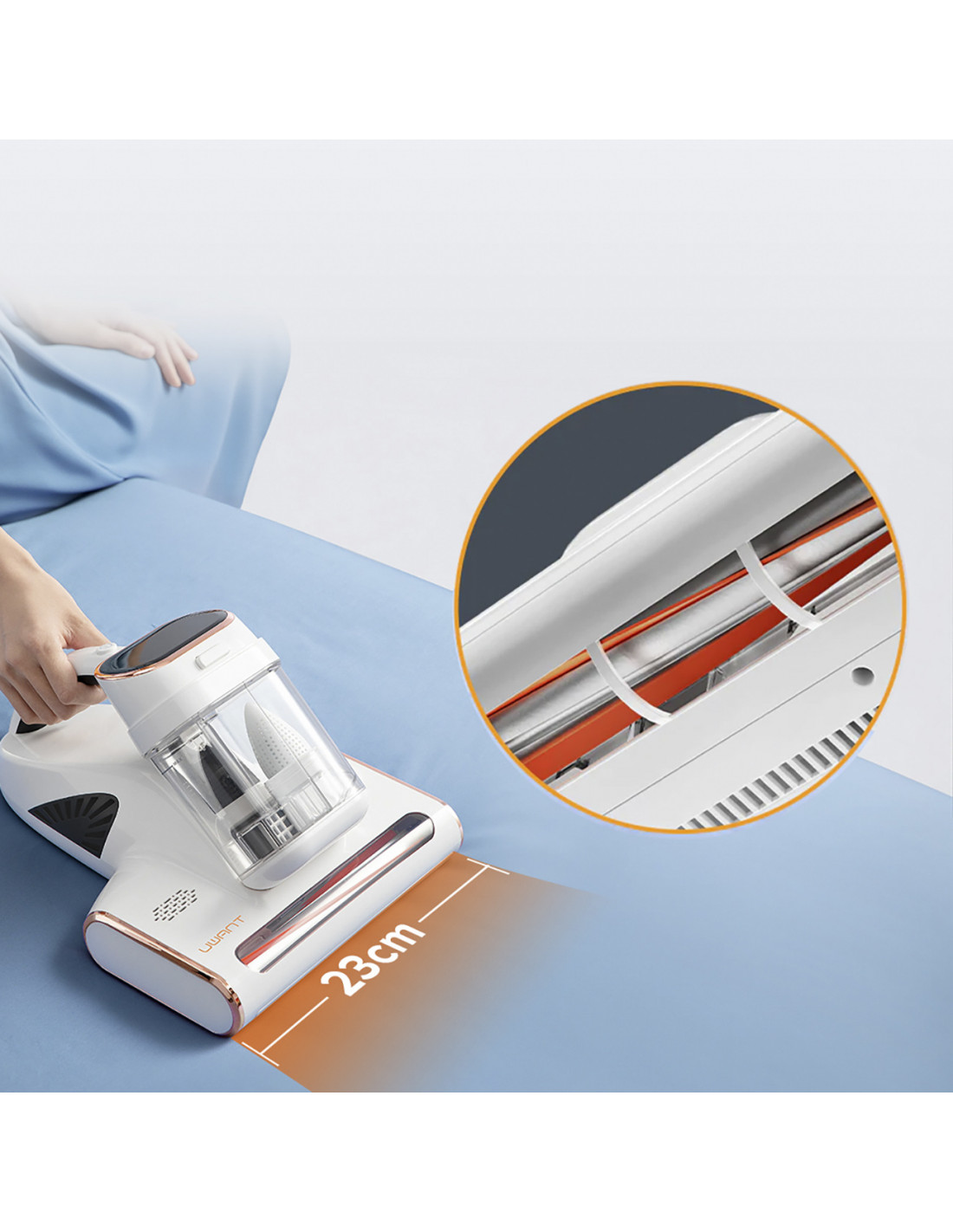 Čiužinių dulkių siurblys UWANT M300 – tai modernus prietaisas, skirtas alergiškiems žmonėms ir tiems, kurie rūpinasi savo šeimos sveikata. Dėl inovatyvios UV sterilizavimo funkcijos, galingo siurbimo ir unikalios dulkių erkučių šalinimo technologijos M300 efektyviai pašalina alergenus, dulkes ir bakterijas, užtikrindamas sveiką miegą ir švarų orą. Idealiai tinka naudoti miegamuosiuose, ant sofų, kilimų ar tarp žaislų, šis dulkių siurblys sujungia efektyvumą ir paprastą naudojimą. Jis užtikrina ilgalaikius rezultatus, nereikia dažnai ištuštinti.