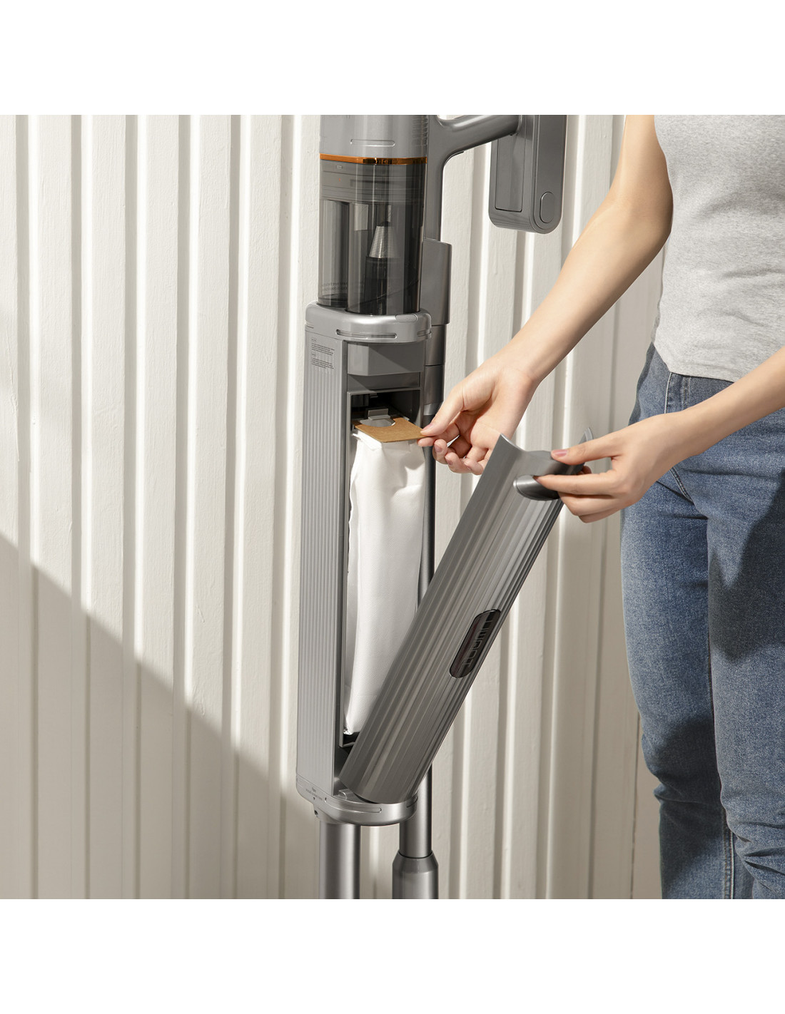 - - Novatoriška 4 viename bazinė stotelė: UWANT V100 turi bazinę stotelę, kuri apjungia keturias funkcijas: automatinį dulkių surinktuvo ištuštinimą, lengvą dulkių maišelio keitimą (60 dienų be valymo), laikymą ir įkrovimą. Baigę valyti, tiesiog padėkite įrenginį ant pagrindo, kad sutvarkytumėte.