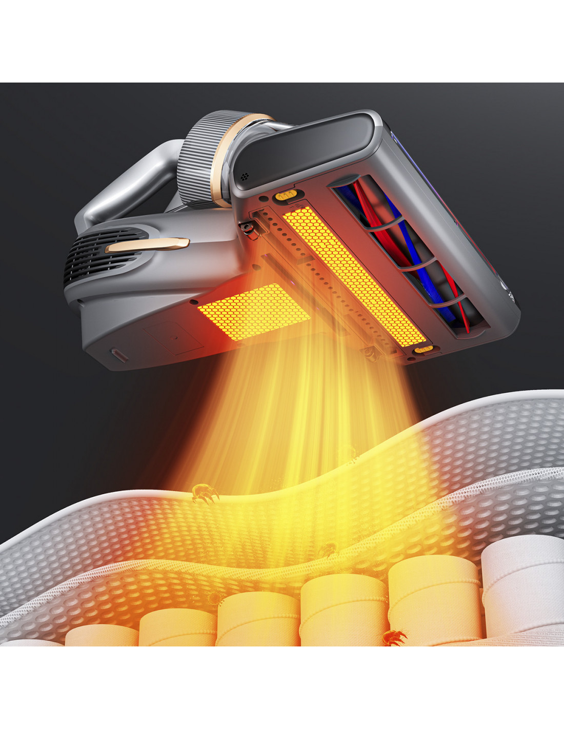 - - UV technologija sterilizavimui: dulkių siurblys skleidžia ultravioletinę šviesą, kuri sunaikina 99,99 % bakterijų ir dulkių erkučių, užtikrindama išskirtinę higieną tokiose vietose kaip lovos, sofos ir čiužiniai,