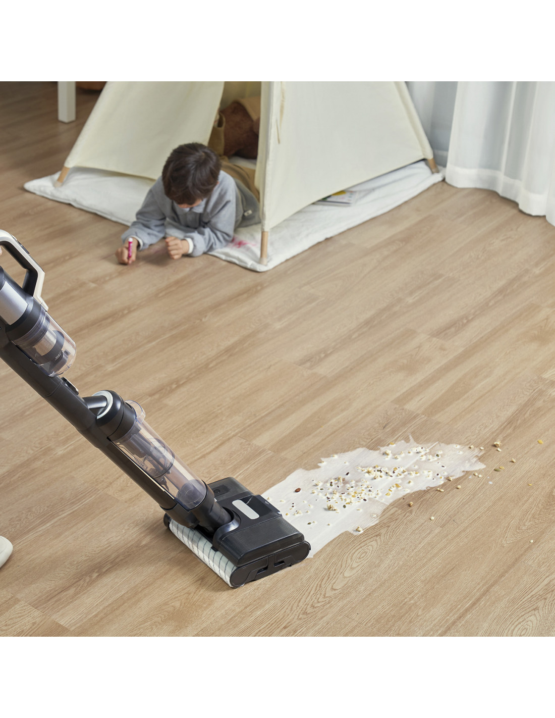 Išmanus jutiklis aptinka dulkes ir automatiškai reguliuoja siurbimo galią. Rankinis arba automatinis valdymas leidžia reguliuoti vandens kiekį pagal užterštumo lygį, užtikrinant taupymą ir efektyvumą.