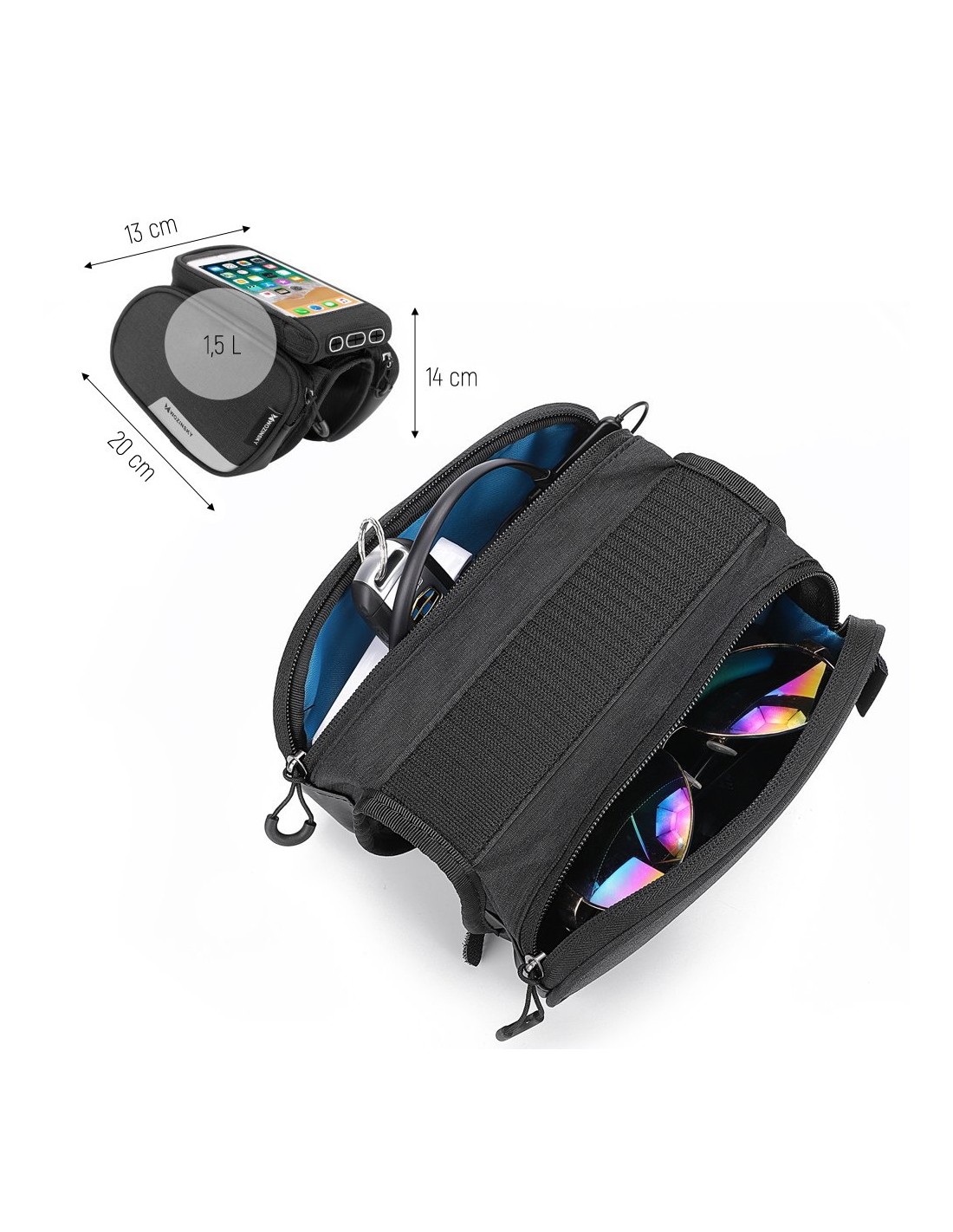 Dviračio rėmo krepšys + nuimamas telefono dėklas iki 6,5 colio, 1,5 l, juodas