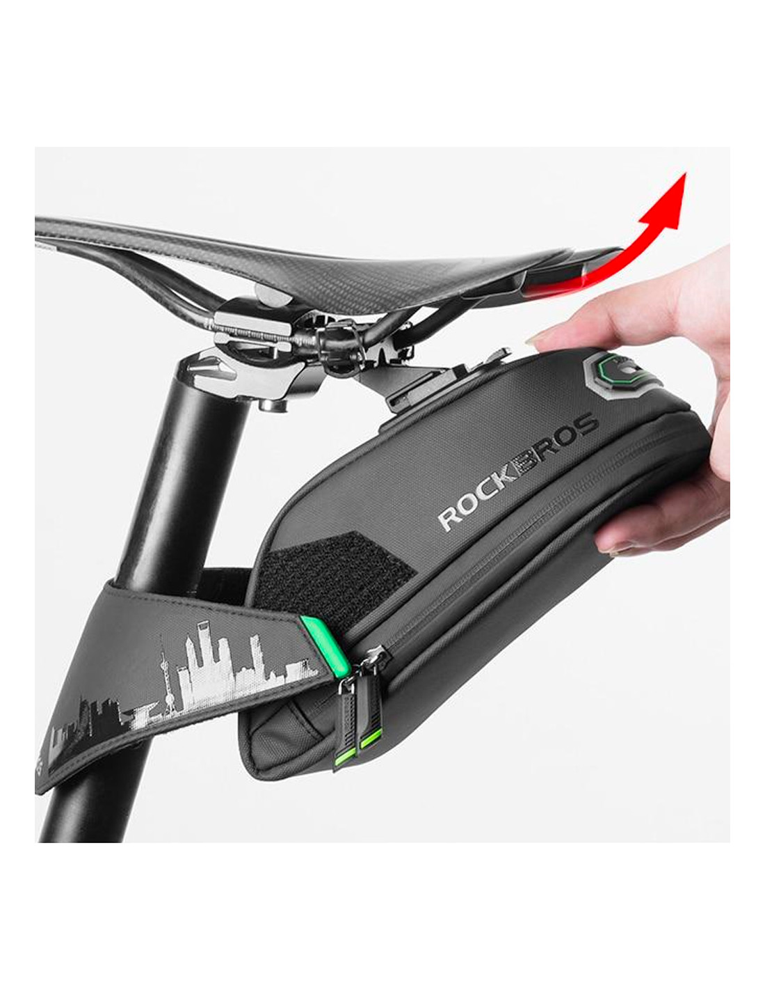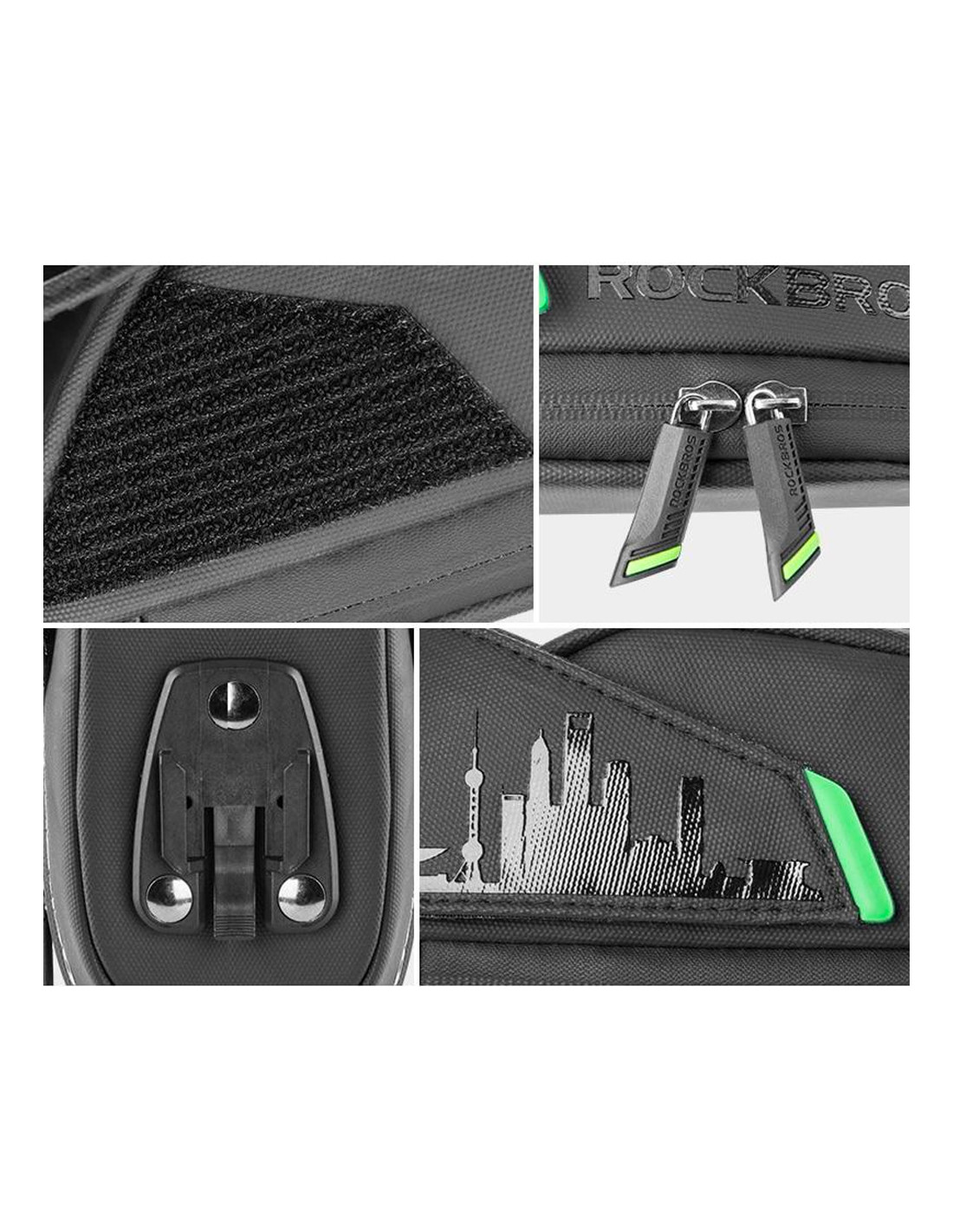 „Rockbros C27-1“ dviračio krepšys yra didelės talpos ir pagamintas iš aukščiausios kokybės medžiagų. Jame lengvai telpa piniginė, telefonas, atsarginė kamera ar pompa. Vidiniai skyriai leidžia daug lengviau palaikyti tvarką. Šviesą atspindintys elementai padidina matomumą kelyje, ypač sutemus.