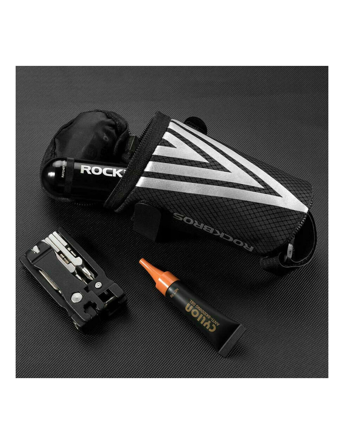 „Rockbros C28“ dviračio krepšys yra praktiškas aksesuaras kiekvienam dviratininkui. Jį galima greitai pritvirtinti naudojant „Velcro“ dirželius. Jis pagamintas iš grūdintos, vandeniui atsparios medžiagos. Papildomi atšvaitai padidina saugumą važiuojant sutemus. Jis lengvas ir taupo vietą, tačiau jame vis tiek telpa piniginė, raktai, žibintuvėlis ar telefonas.