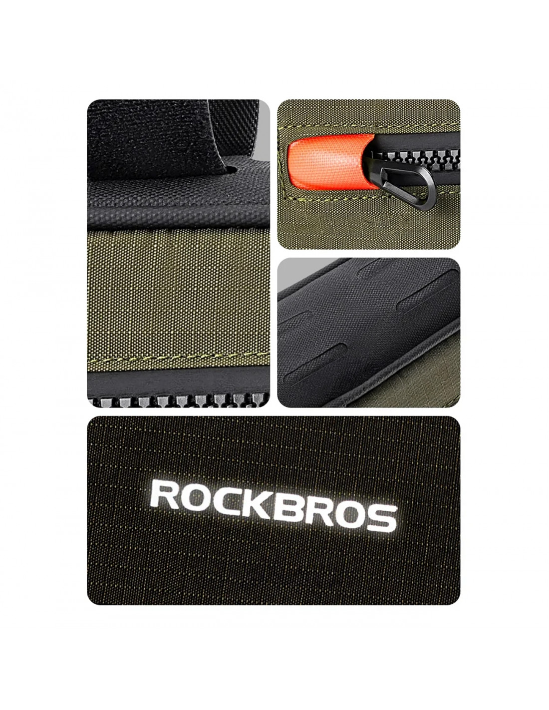 - - Lengva sumontuoti – nereikia jokių įrankių . „Rockbros“ krepšys turi keturis „Velcro“ dirželius, kurie leidžia greitai pritvirtinti jį prie dviračio rėmo.