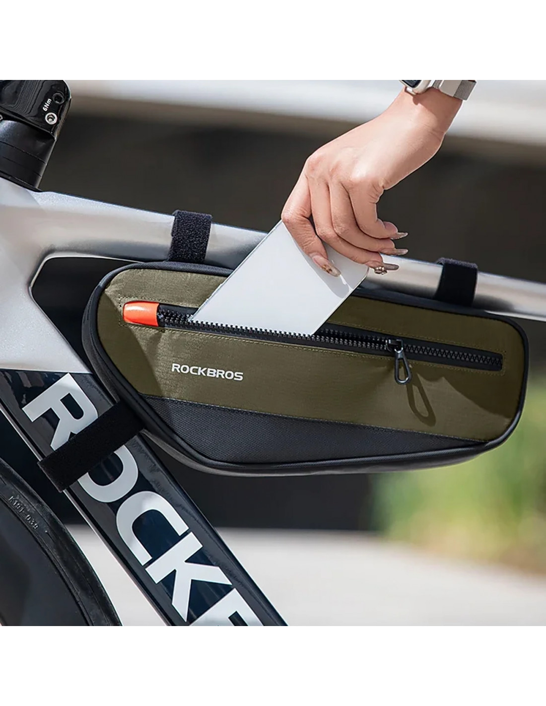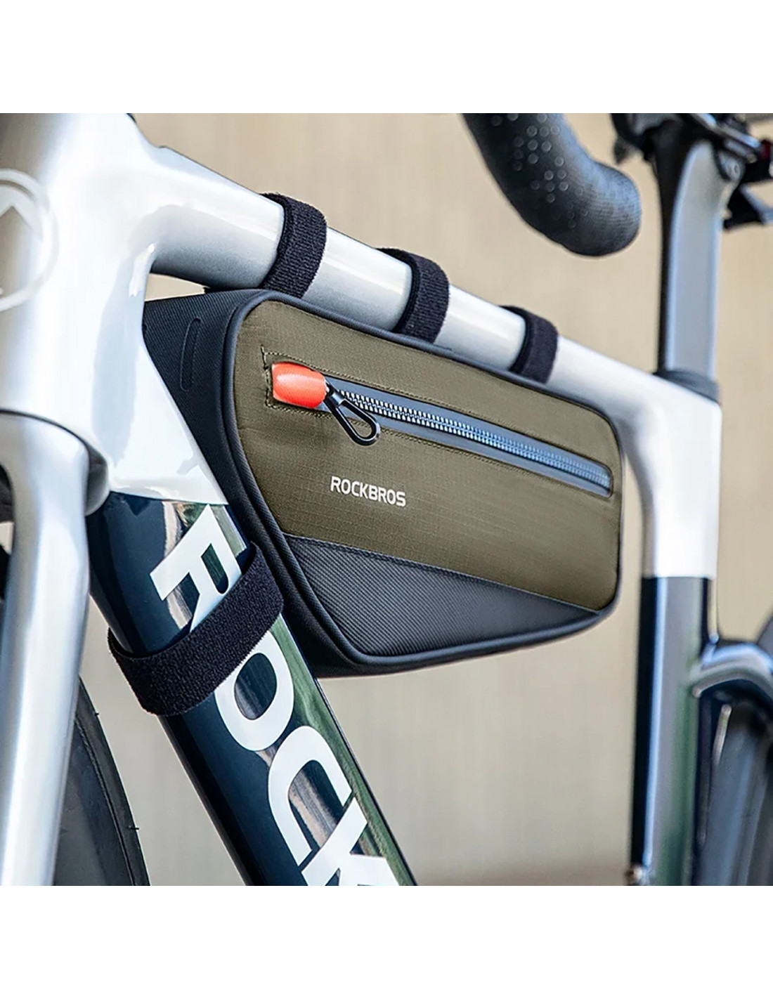 Patogus ir funkcionalus – toks yra „Rockbros 30120079001“ rėmo krepšys . Jame saugiai ir lengvai susidėsite svarbiausius daiktus kiekvienos kelionės metu. 1,7 litro talpos krepšyje galite nešiotis viską, ko jums reikia – nuo telefono iki raktų ir akinių nuo saulės. Dėl plono krepšio dizaino jis puikiai priglunda prie dviračio rėmo, nevaržydamas judėjimo laisvės, o šviesą atspindintis logotipas užtikrina geresnį matomumą sutemus, o tai labai svarbu jūsų saugumui.