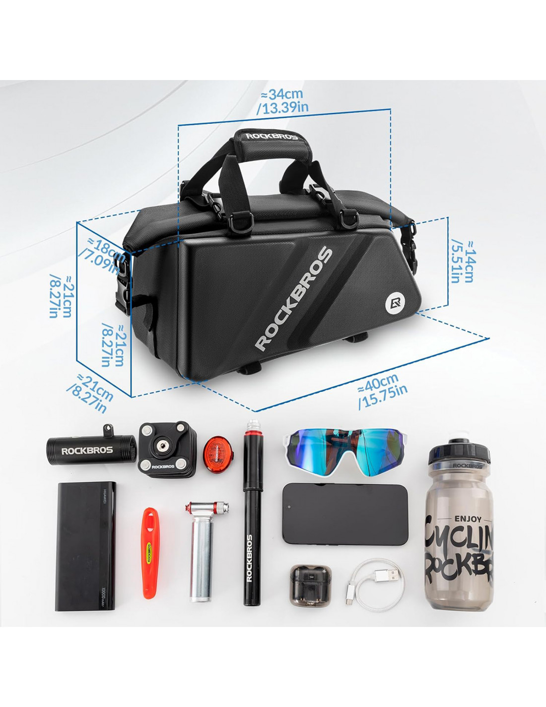 „Rockbros 30140090001“ dviračių krepšys bus nepakeičiamas palydovas kiekvienoje kelionėje dviračiu. Dėl didelės 11,6 litro talpos ir elastingo užsegimo galėsite saugiai susidėti visus būtiniausius daiktus. Dėl daugiafunkciškumo jis idealiai tinka ne tik važinėjimui dviračiu, bet ir žygiams pėsčiomis. Tvirti kabliukai ir kilpiniai dirželiai užtikrina lengvą montavimą, o šviesą atspindinti konstrukcija padidina matomumą kelyje. Krepšys tinka įvairiems bagažinės modeliams, todėl tai universalus sprendimas kiekvienam dviratininkui.