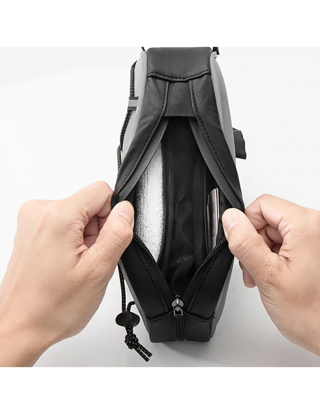 Pamirškite netvarką savo krepšyje. „Rockbros 3012010901“ krepšio vidiniai skyriai sukurti taip, kad juose tilptų visi smulkūs, būtini daiktai, pavyzdžiui, piniginė, dokumentai ar telefonas. Taip viskas išlieka tvarkingai ir lengvai pasiekiama važiuojant, todėl jį daug lengviau naudoti kelyje. Gerai apgalvotas skyrių išdėstymas leidžia greitai rasti tai, ko jums reikia, nereikia naršyti po turinį.