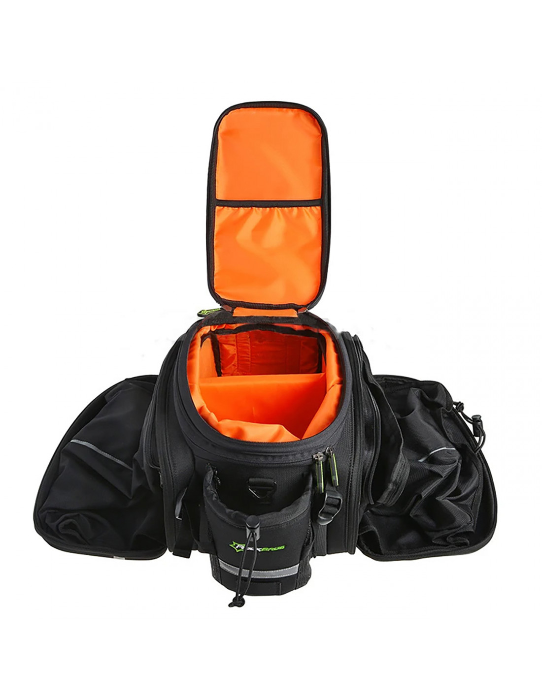 „Rockbros A6-03BK“ dviračio krepšys siūlo daug vietos jūsų įrangai. Jis lengvai transformuojamas nuo kompaktiškų 10 litrų iki įspūdingų 35 litrų, puikiai tinkančių ilgoms kelionėms ar spontaniškoms apsipirkimo kelionėms. Išsiplečiančių kišenių sistema ir užtrauktuku užsegamas viršus leidžia greitai reguliuoti dydį.