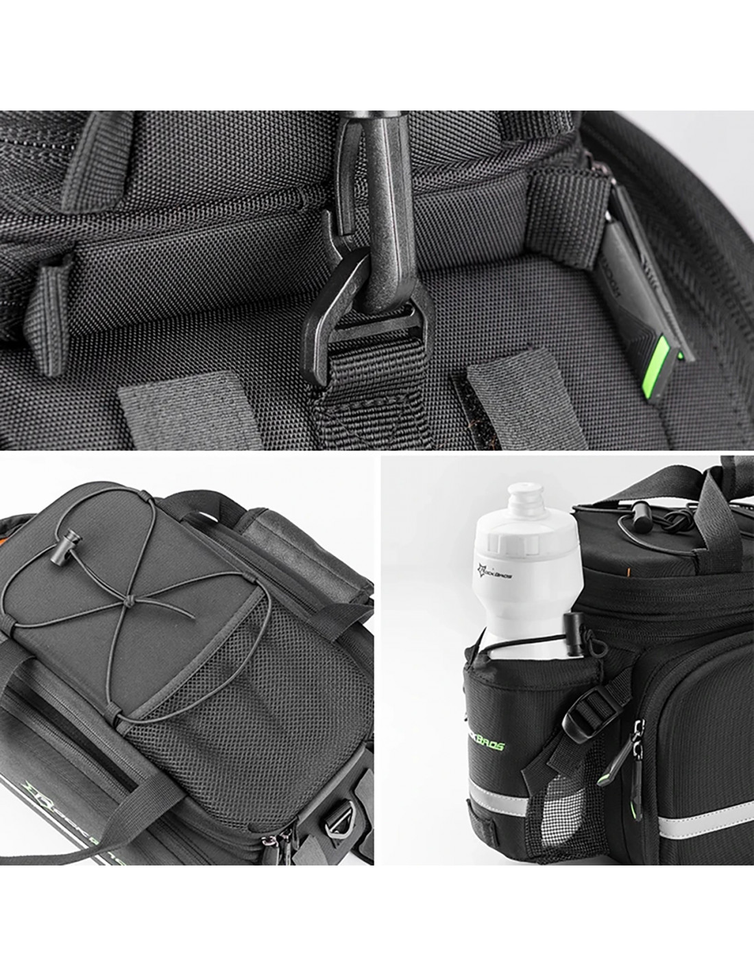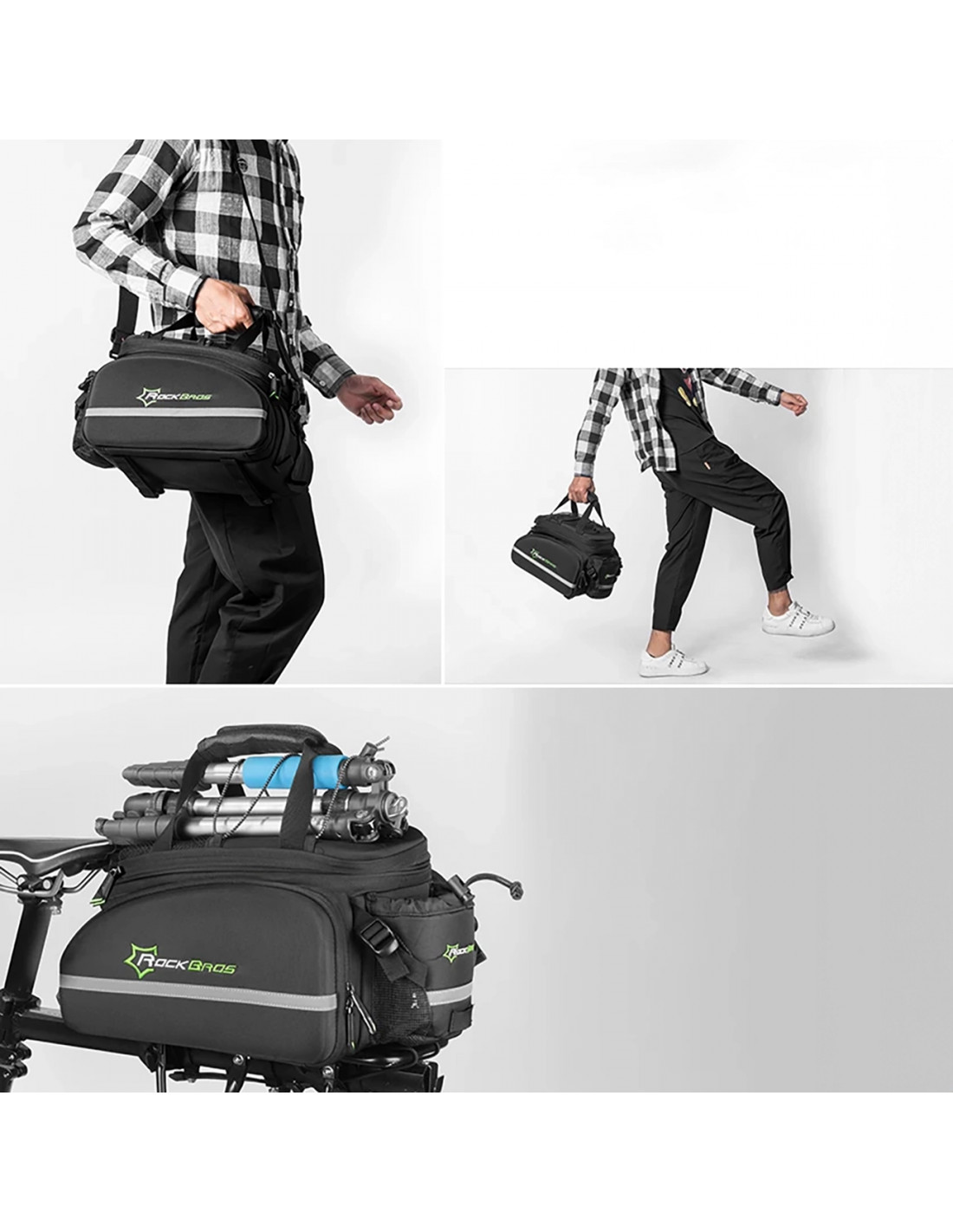 „Rockbros A6-03BK“ krepšys puikiai tinka ne tik važinėjimui dviračiu, bet ir naudojimui bekele. Dėl greito atsegimo sistemos jį galite lengvai išimti iš bagažinės ir naudoti kaip rankinį bagažą arba pirkinių krepšį. Papildomos rankenos ir ilgas pečių dirželis užtikrina patogų nešiojimą miesto gatvėmis ir biuro koridoriais.