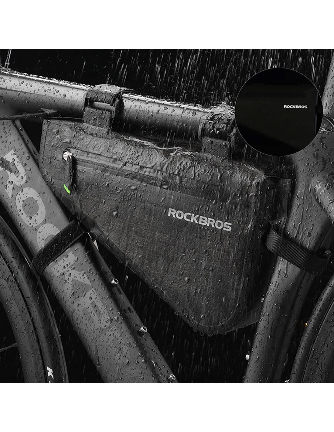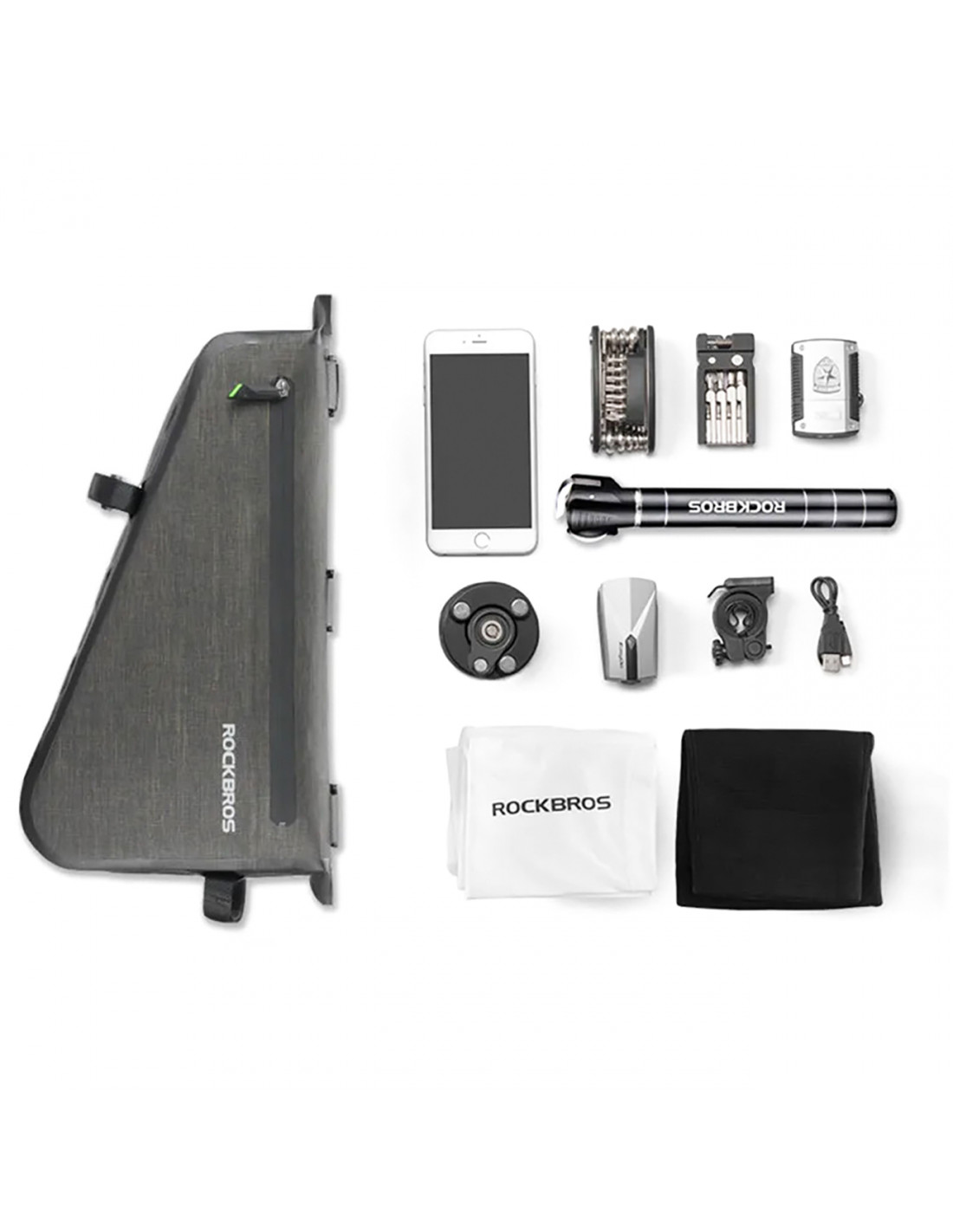 „Rockbros AS-017“ dviračių krepšys puikiai tinka didesniems daiktams gabenti. 5 litrų talpa suteikia pakankamai vietos visiems priedams ir įrankiams, kurių prireiks ilgesnėms kelionėms. Krepšys yra atsparus vandeniui, todėl jo turinys apsaugotas nuo nepalankių oro sąlygų. Atspindintys elementai užtikrina saugumą. Lengvas ir tvirtas tvirtinimas keturiais „Velcro“ dirželiais užtikrina stabilumą, o krepšio forma leidžia lengvai judėti kojoms.