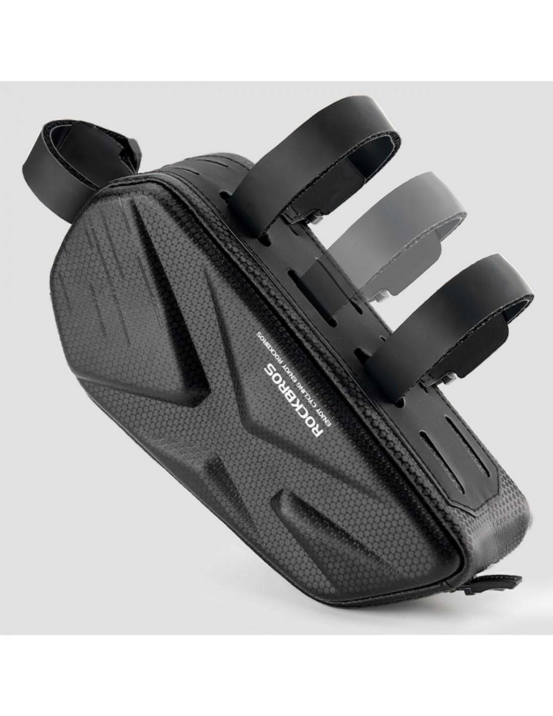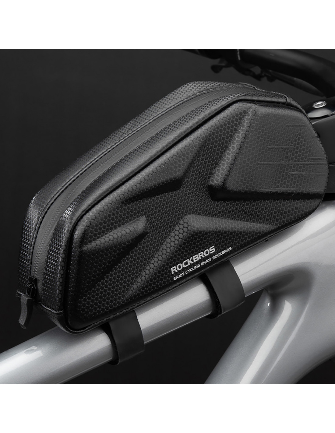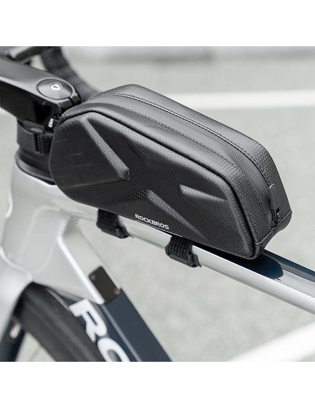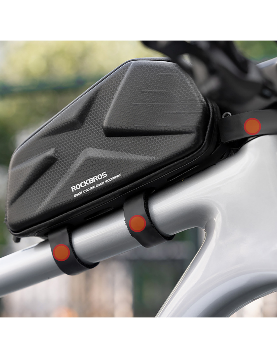 „Rockbros“ 1,4 litro talpos dviračių krepšys yra tvirtas ir elegantiškas pasirinkimas visiems dviračių sporto entuziastams, vertinantiems komfortą, tvarką ir ilgaamžiškumą. Aerodinaminė forma ir sustiprinta PU bei EVA konstrukcija užtikrina, kad krepšys išliktų formos net sudėtingomis sąlygomis. Vandeniui atspari danga ir patvarus užtrauktukas užtikrina, kad jūsų daiktai būtų saugūs net ir lyjant. Trigubi „Velcro“ dirželiai leidžia greitai ir be įrankių pritvirtinti krepšį nepažeidžiant dažų. Reguliuojamas dirželių ilgis leidžia krepšį pritaikyti įvairiems dviračių rėmams. Juoda apdaila su anglies pluošto raštu suteikia jam modernų vaizdą, kuris dera prie bet kokio tipo dviračio – plento, miesto ar MTB.