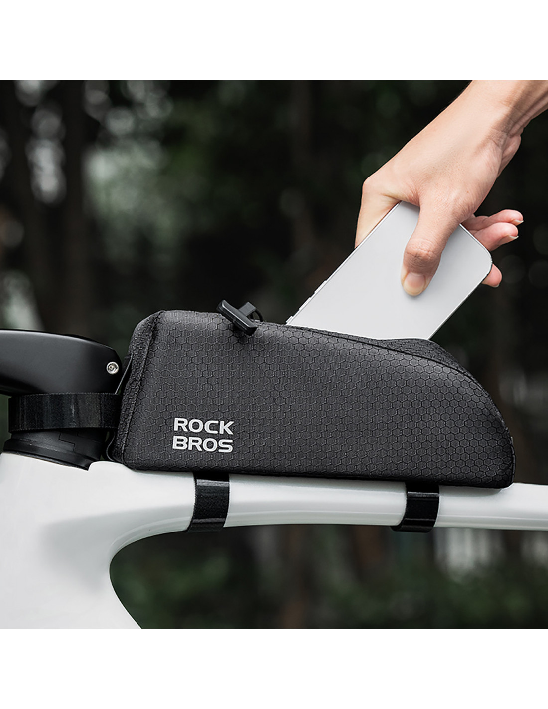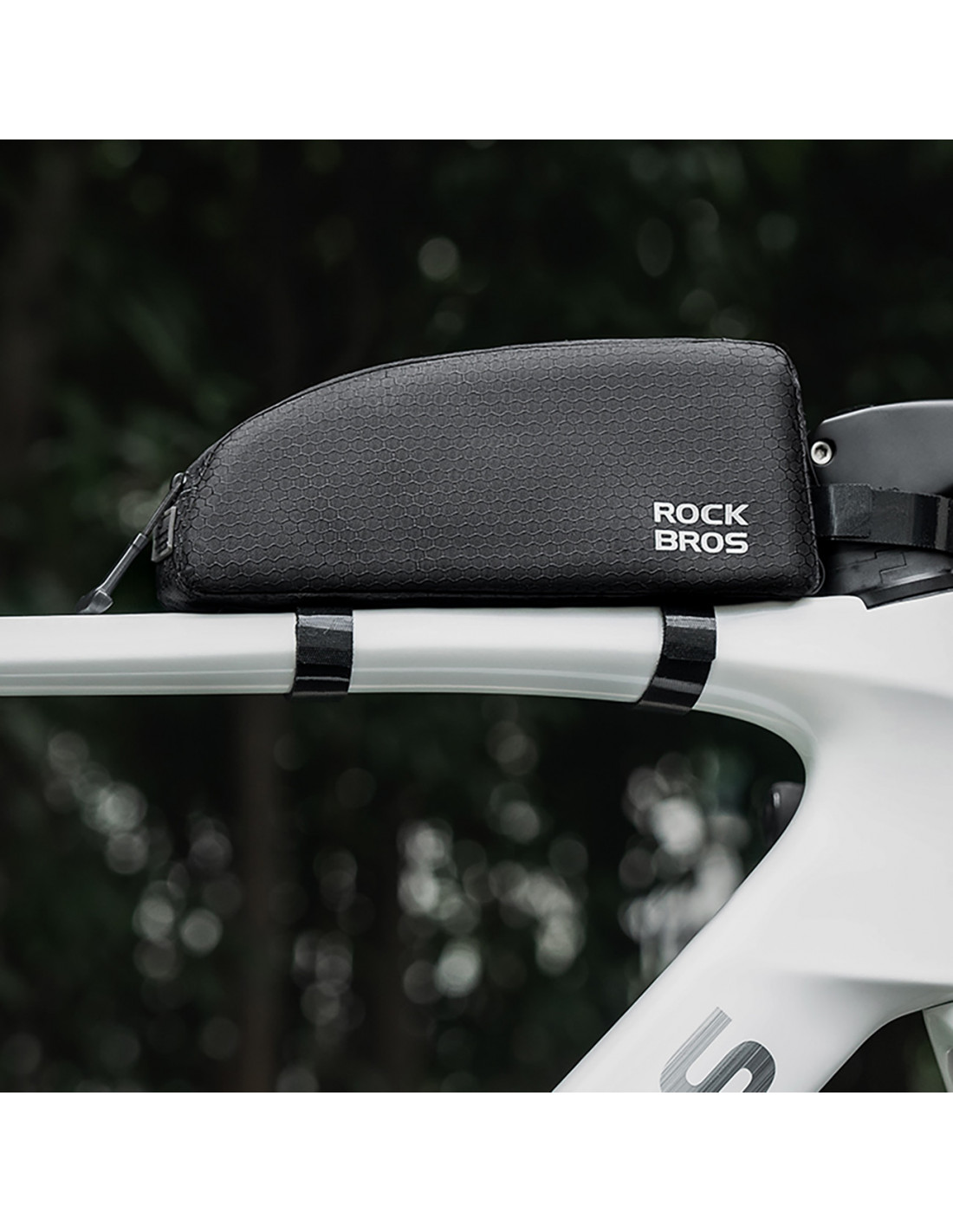 „Rockbros“ dviračio krepšys, skirtas viršutinei kamerai, yra patikimas sprendimas bet kuriam dviratininkui, vertinančiam komfortą, saugumą ir funkcionalumą. Aerodinaminė forma puikiai priglunda prie rėmo, todėl nereikia minti pedalų. 0,9 litro talpa patogiai sutalpina būtiniausius priedus, o siauras krepšio profilis (6 cm) sumažina trinties riziką. Lygus užtrauktukas leidžia greitai, viena ranka pasiekti turinį, o tai ypač naudinga važiuojant. Krepšys turi šviesą atspindinčius elementus , kad būtų geresnis matomumas naktį, ir vandeniui atsparią dangą, apsaugančią nuo besikeičiančių oro sąlygų. Lipnios juostos užsegimas yra paprastas ir nepažeidžia jūsų dviračio dažų. Klasikinė juoda spalva dera prie bet kokio dviračio – nuo kalnų dviračių iki plento dviračių.
