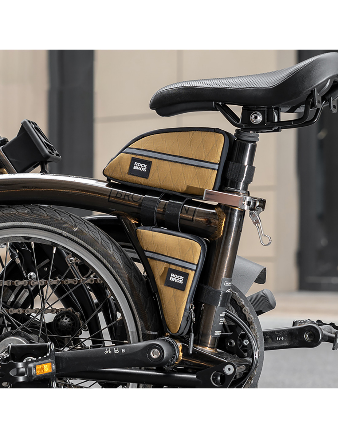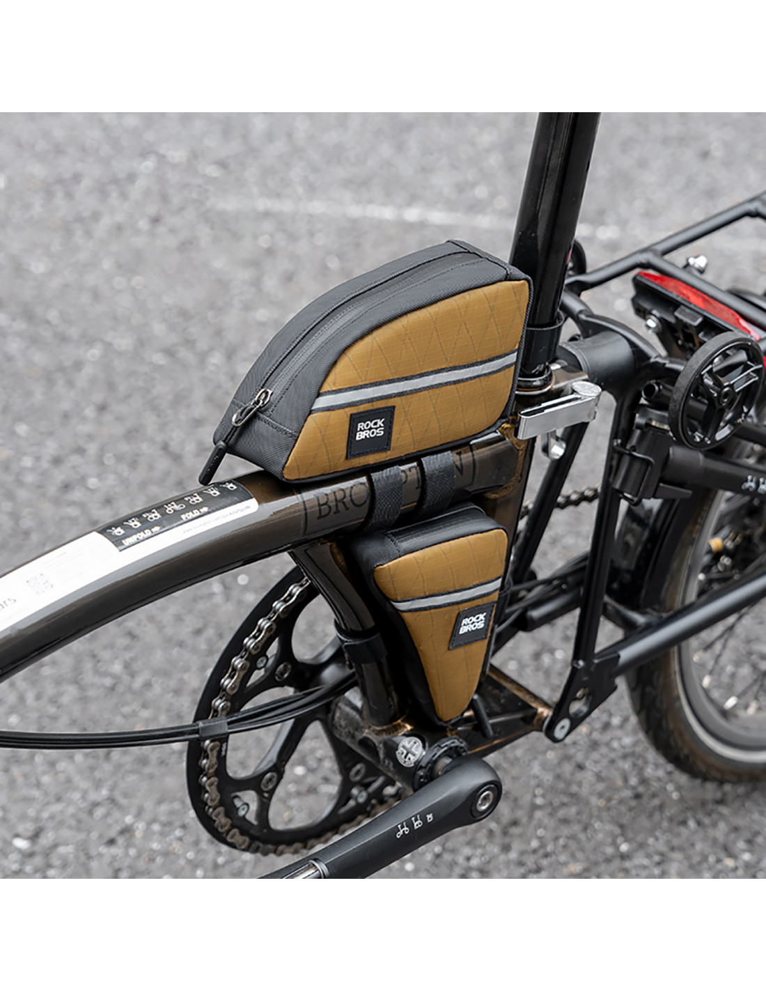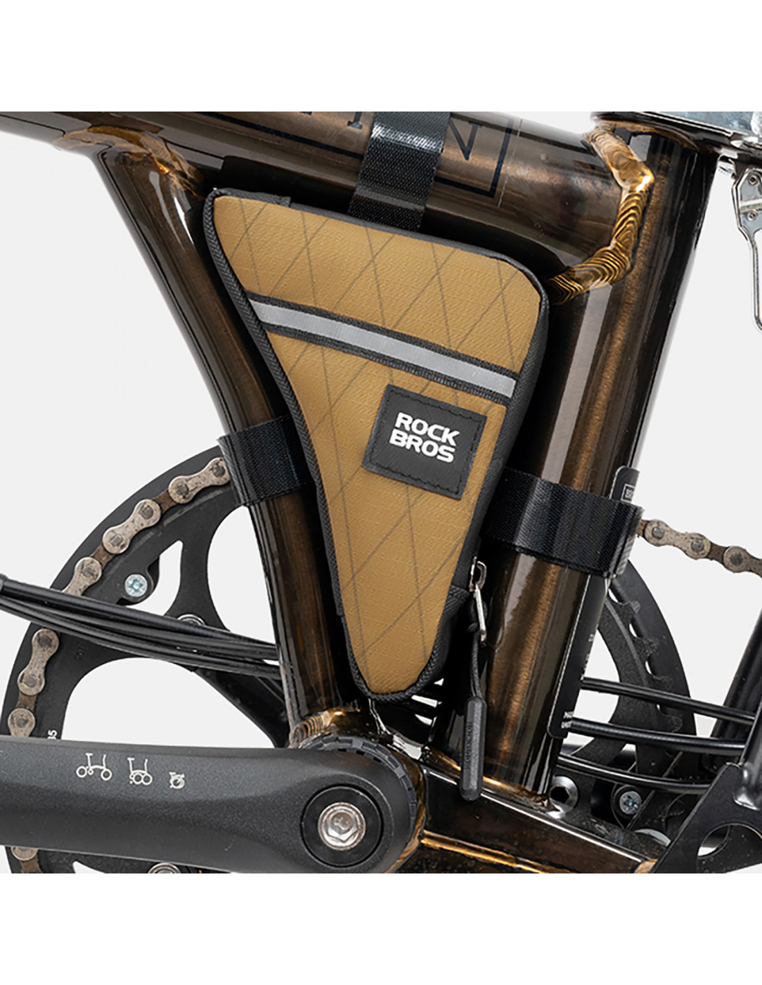 „Rockbros“ trikampio formos dviračio rėmo krepšys – puikus pasirinkimas tiems, kurie vertina tvarką, stilių ir funkcionalumą važiuodami. Sukurtas galvojant apie aktyvius naudotojus, jis pasižymi kompaktiška 0,3 litro talpa – pakankamai, kad tilptų būtini priedai, tokie kaip raktai, įrankiai ar telefonas. Dėl nailono, 1000D pluošto ir poliamido panaudojimo krepšys yra patvarus, atsparus dilimui ir elegantiškas. Praktiška tvirtinimo sistema leidžia greitai ir be įrankių pritvirtinti ir nuimti krepšį. Krepšys sukurtas taip, kad tvirtai priglustų prie dviračio rėmo, netrukdydamas minti pedalus. Spalvų variantai, įskaitant stilingą rudą atspalvį, suteiks jūsų dviračiui modernumo.