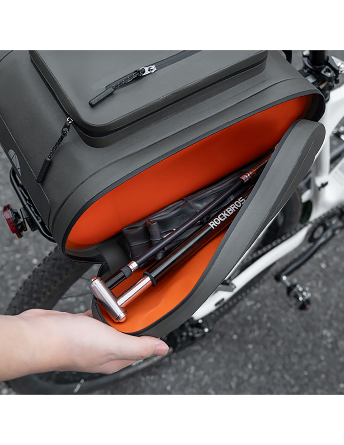 „Rockbros 14L“ dviračio krepšys – puikus sprendimas visiems, vertinantiems funkcionalumą, patikimumą ir modernų dizainą. 14 litrų talpos krepšyje lengvai tilps būtiniausi daiktai – nuo įrankių iki užkandžių ir apsaugos nuo lietaus. Pagamintas iš aukštos kokybės, vandeniui atsparios 840D TPU medžiagos , jis efektyviai apsaugo jūsų įrangą net ir lyjant stipriam lietui. Gerai apgalvotas dizainas su dideliu dvigubu užtrauktuku ir šoninėmis kišenėmis leidžia greitai pasiekti jūsų įrangą. Papildomos savybės, tokios kaip nešiojimo rankena, šviesą atspindinčios detalės ir vidinės tinklinės kišenės, paverčia šį krepšį puikiu kompanionu bet kokiam maršrutui. Lengvai montuojamas, stabilus ir patogus, „Rockbros“ yra patikimas pasirinkimas bet kokiam keliui.