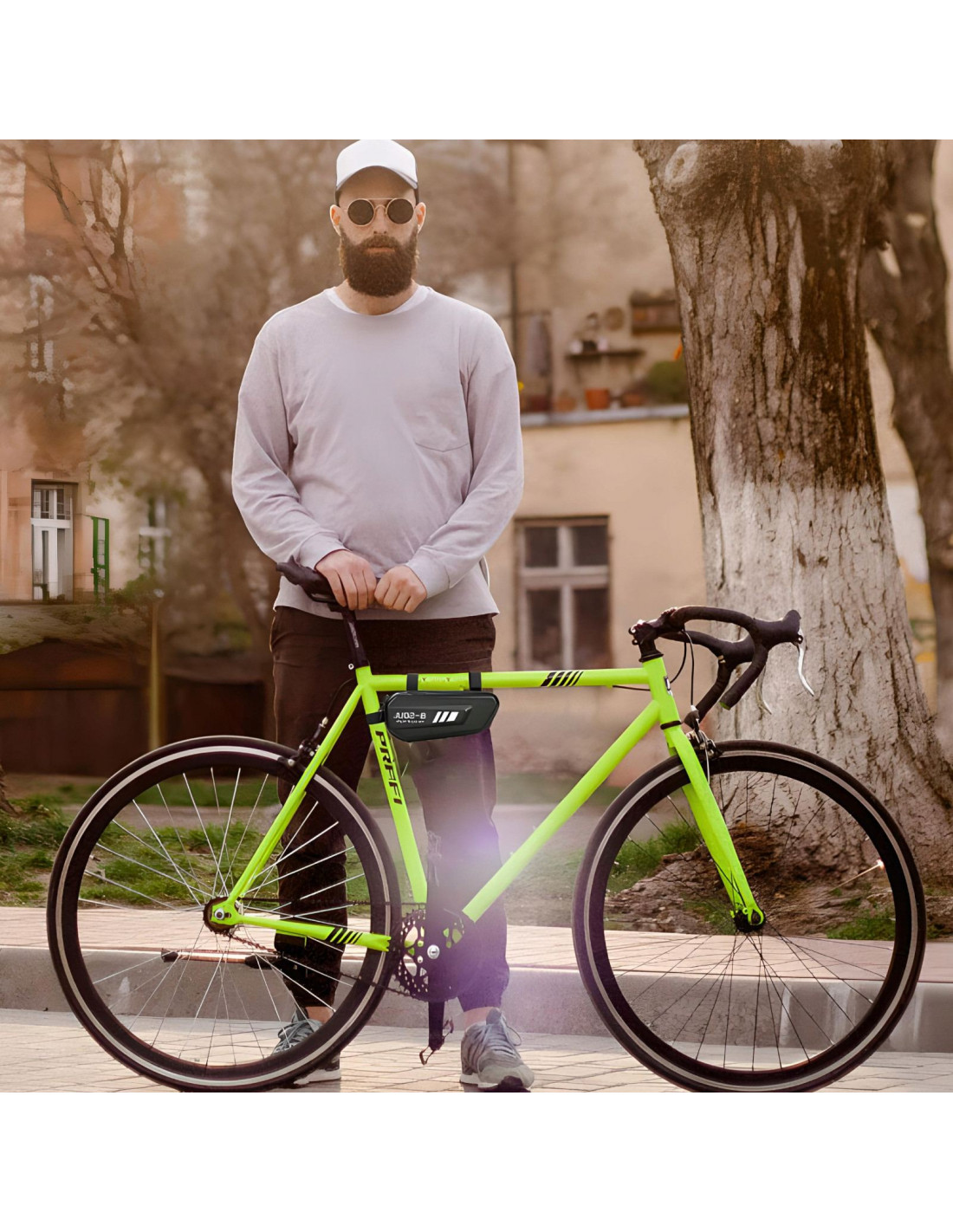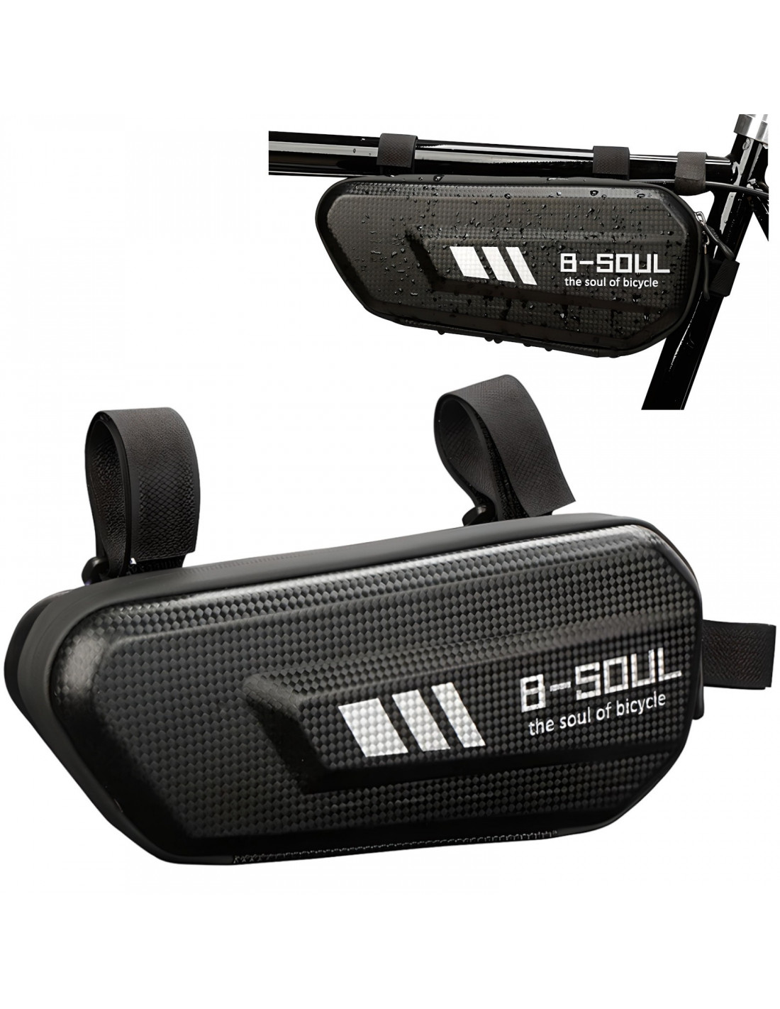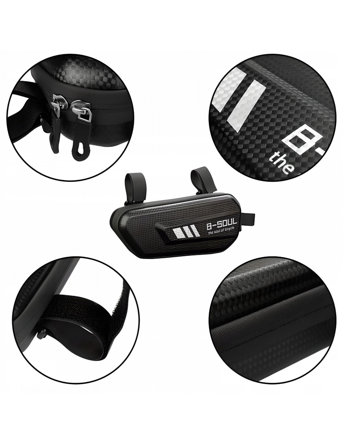 Šis prie rėmo tvirtinamas dviračio krepšys pagamintas iš vandeniui atsparaus EVA audinio . Jame saugiai ir patogiai tilps telefonas, raktai, piniginė ir kiti smulkūs daiktai važiuojant dviračiu. Lengvai uždedamas ir nuimamas dėl elastingų „Velcro“ dirželių, jis stabilus ir patogus net ir važiuojant nelygiais takais.