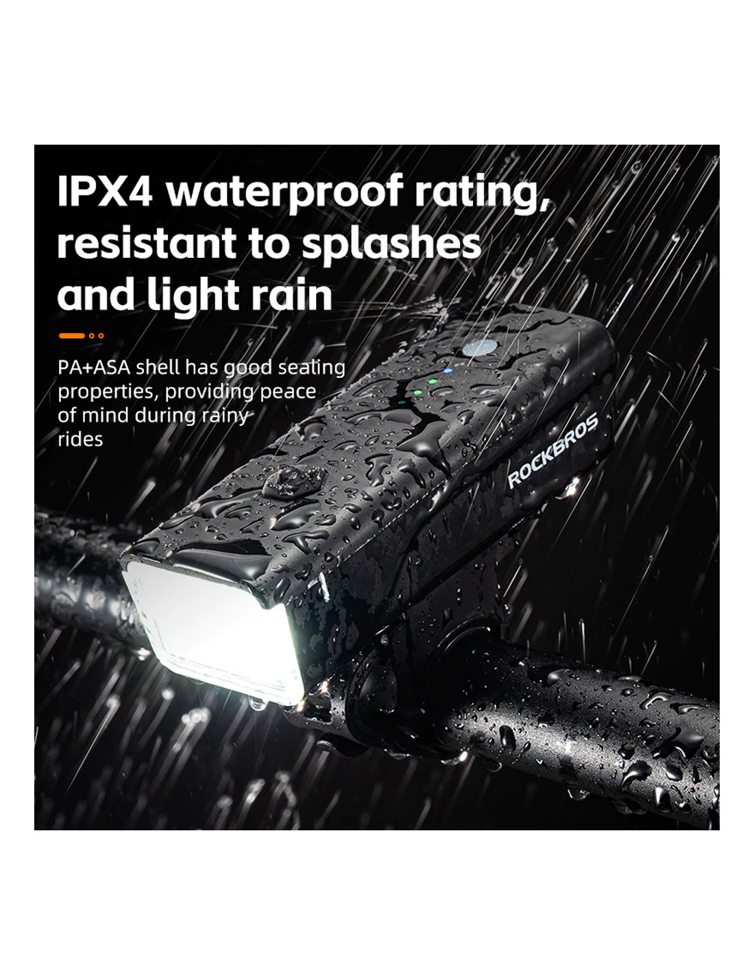 - – Veikia puikiai, nepriklausomai nuo oro sąlygų. IPX4 sertifikatas reiškia, kad žibintas yra atsparus vandens purslams, todėl galite važiuoti be rūpesčių net ir lyjant.