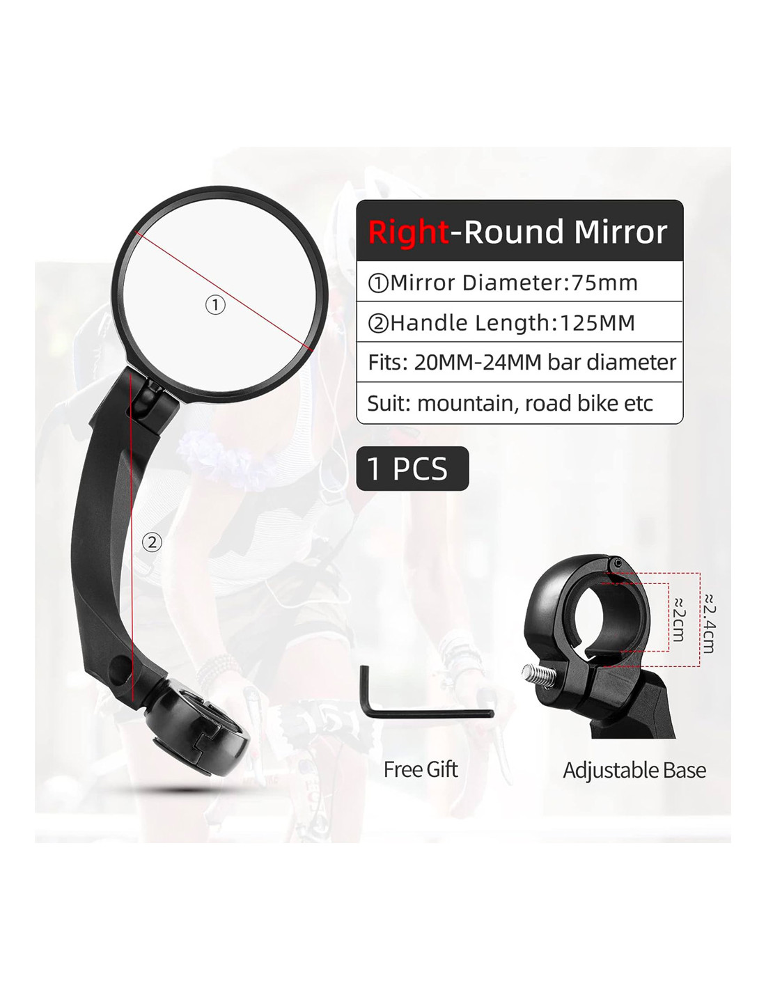 Dviratininkai žino saugumo ir komforto vertę važiuodami. „Rockbros 26210001004“ dviračio veidrodėlis yra raktas į šių vertybių pasiekimą. Aiškus vaizdas ir maksimalus matomumas suteikia ramybės bet kuriame kelyje. Veidrodėlio skersmuo yra 75 mm, o matymo laukas platus. Jis yra visiškai reguliuojamas, todėl veidrodėlį galima idealiai pritaikyti prie naudotojo poreikių. Be to, veidrodėlio pagrindas reguliuojamas 120 laipsnių kampu. Jis tinka 20–24 mm skersmens vairams.