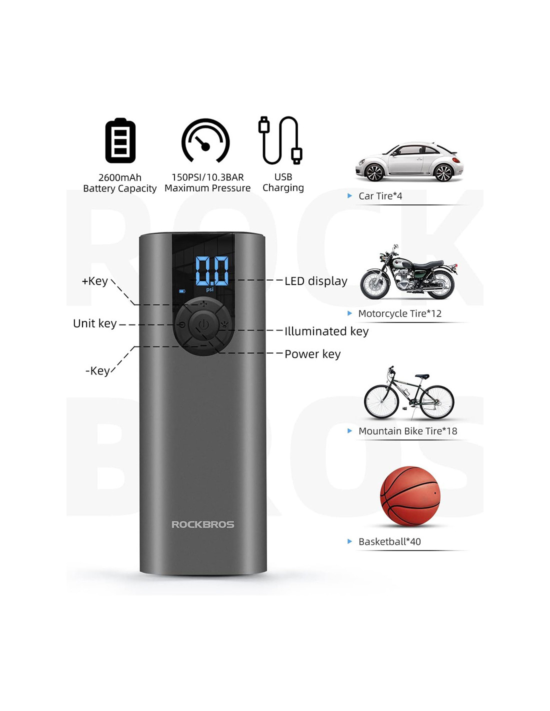 Pasiruoškite kelionei greitai ir be rūpesčių. „Rockbros 42720001001“ elektrinis dviračio siurblys yra mažas prietaisas su didelėmis galimybėmis. Jis pripučia padangą per 2–3 minutes. Jis lengvas ir telpa bet kur. Turi ilgai veikiančias baterijas ir LED ekraną. Jis siūlo 5 pripūtimo parinktis. Visada pasiruošęs, kai tik prireiks.